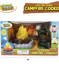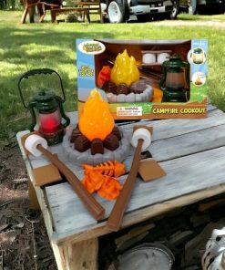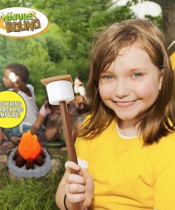 2. Diversión de fogata: Completo con malvaviscos, pescado y galletas simuladas, los niños pueden asar golosinas sobre el fuego con dos palos para asar.
