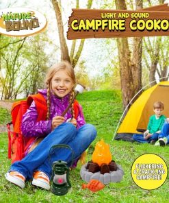 1. Aventura te espera: Despierta la imaginación de tu hijo con una fogata iluminada que crepita, una linterna iluminada y todos los accesorios para diversión de campamento interminable.