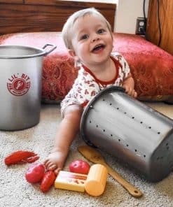 Presentamos el Set de Juego de Cocina para Niños Lil’ Bit Boiling Co., un set de juguetes único y atractivo que trae la alegría de un tradicional hervido de cangrejos al tiempo de juego de tu hijo. Este set de juego de cocina para niños es perfecto para los pequeños chefs que aman imitar a sus padres en la cocina. El set incluye una olla para hervir cangrejos de 9″ de altura, colador, paleta de madera grabada con láser, 6 cangrejos, 2 papas, 1 elote y una caja de condimentos. Es una adición perfecta a los accesorios de cocina de juego de tu hijo, mejorando su experiencia de juego de simulación. Nuestro set de juego de parrilla no es solo un juguete divertido, también es una gran herramienta de aprendizaje. Ayuda a los niños a entender diferentes alimentos como cangrejos, papas y elotes, y cómo se preparan. Es una manera fantástica de introducirlos a diferentes técnicas de cocina y herramientas de cocina. Este set de juego es perfecto para el juego dramático y puede ser una gran adición al set de cocina de juego de tu bebé. También es un excelente regalo para cumpleaños, fiestas infantiles o como sorpresa para tu pequeño. Con nuestro set de parrilla de juguete, tu hijo puede tener una experiencia de juego divertida y educativa. Así que deja que tus pequeños disfruten de un poco de tradición sureña con este set de juego de hervido de cangrejos, creando recuerdos que durarán toda la vida.
