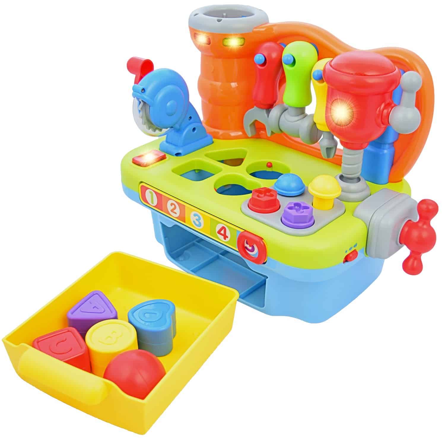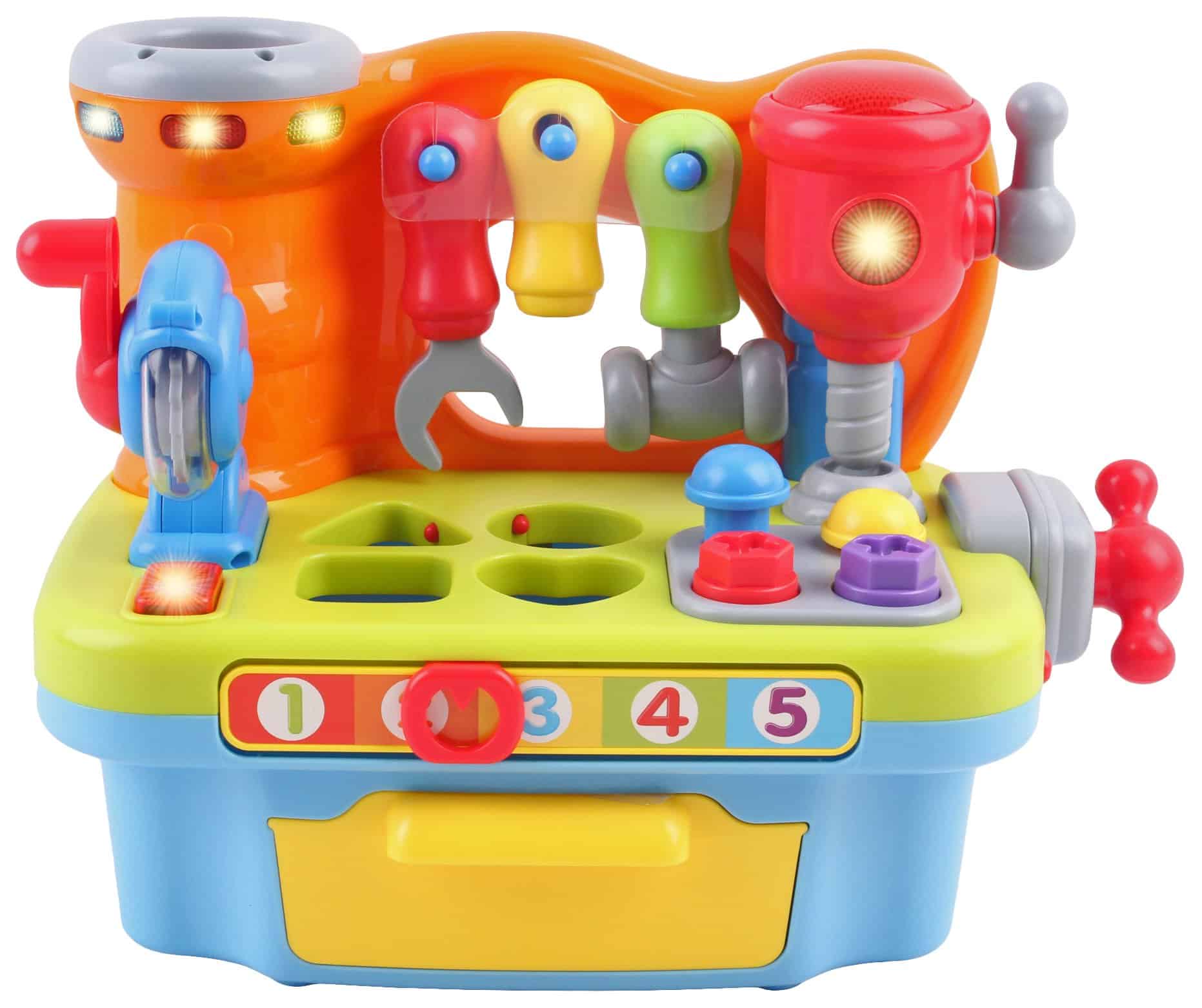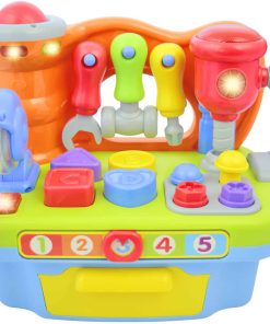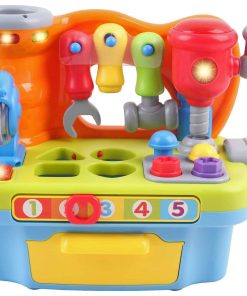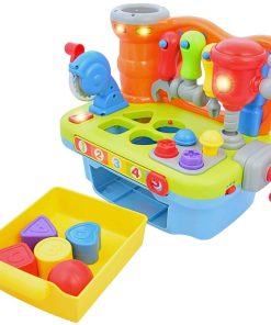 Diseñado para preescolares, este taller de juguete puede fortalecer sus habilidades motoras finas mientras agarran y manipulan cada herramienta y bloque. También hay otras cosas que pueden aprender mientras juegan con este juguete como el reconocimiento de colores y formas, contar, el alfabeto y ¡mucho más!