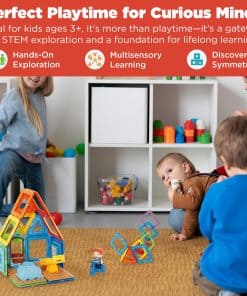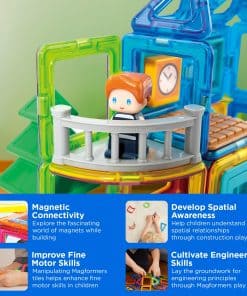 ¡Haz clic, conecta, crea! Explora infinitas posibilidades de construcción con el Set de Juego Max’s Playground de Magformers. Tu pequeño puede construir cualquier cosa que imagine utilizando las formas magnéticas del arcoíris de Magformers y el personaje Max junto con los accesorios para crear casas, torres, parques infantiles y mucho más. Construye en colores del arcoíris con 4 triángulos, 12 cuadrados, 1 sector y accesorios que incluyen 4 ladrillos, 2 ventanas, 1 columpio, 1 tobogán, 2 relojes, 1 baño, 1 cerca, 1 balancín, 1 personaje Max, 1 balcón y 1 bicicleta. Sigue las instrucciones paso a paso y desarrolla el reconocimiento de colores y formas, habilidades motoras finas y capacidad para resolver problemas. El original y auténtico Magformers. Perfecto para el desarrollo cerebral, el pensamiento crítico y la educación STEM. El Set Max’s House de Magformers ha sido seleccionado con orgullo como un juguete STEM y herramienta educativa superior por STEM.org. Cada forma geométrica contiene imanes que nunca se rechazan, así que siempre escucharás el clic de los Magformers. Cuando se acaba el tiempo de juego, utiliza el poder magnético para apilar y guardar fácilmente. Compatible con todos los Magformers, ¡añade los sets de Milo, Minibot y Maggy para más diversión de construcción extendida!