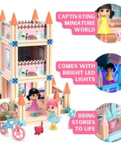 Este set completo es algo más que bloques de construcción; es una puerta de entrada a un mundo en miniatura cautivador de narración y aventura. Los colores estéticos rosa y celeste preparan el escenario para cuentos encantadores, y la gran cantidad de accesorios incluidos, como personas, mascotas, bicicletas, plantas en macetas, luces LED y árboles aseguran que tu hijo pueda dar vida a sus cuentos de hadas. Elaborada con materiales de primera calidad de ABS, esta casa de muñecas garantiza durabilidad y seguridad, asegurando a los padres que la obra maestra de su hijo resistirá para innumerables aventuras y se convertirá en un legado duradero de juego imaginativo y unión familiar. Además, con su presentación exquisita en una caja de regalo y una garantía de 12 meses, es el regalo perfecto para cumpleaños, días festivos, Navidad o cualquier ocasión especial, fomentando tanto la diversión como el juego educativo para tu pequeña princesa. Este juguete único genera alegría, fomenta el desarrollo cognitivo, perfecciona las habilidades motoras finas y cultiva la capacidad de pensar de manera creativa, convirtiéndolo en un aporte verdaderamente excepcional al repertorio de juego de tu hijo.