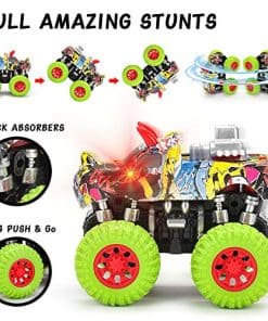 1. Es Simple y Divertido con el mecanismo a Empujón y Marcha, observa cómo la camioneta avanza hasta 30 metros, da volteretas y se rota, y realiza increíbles acrobacias, maniobras con las ruedas traseras y rotación de 360 grados.