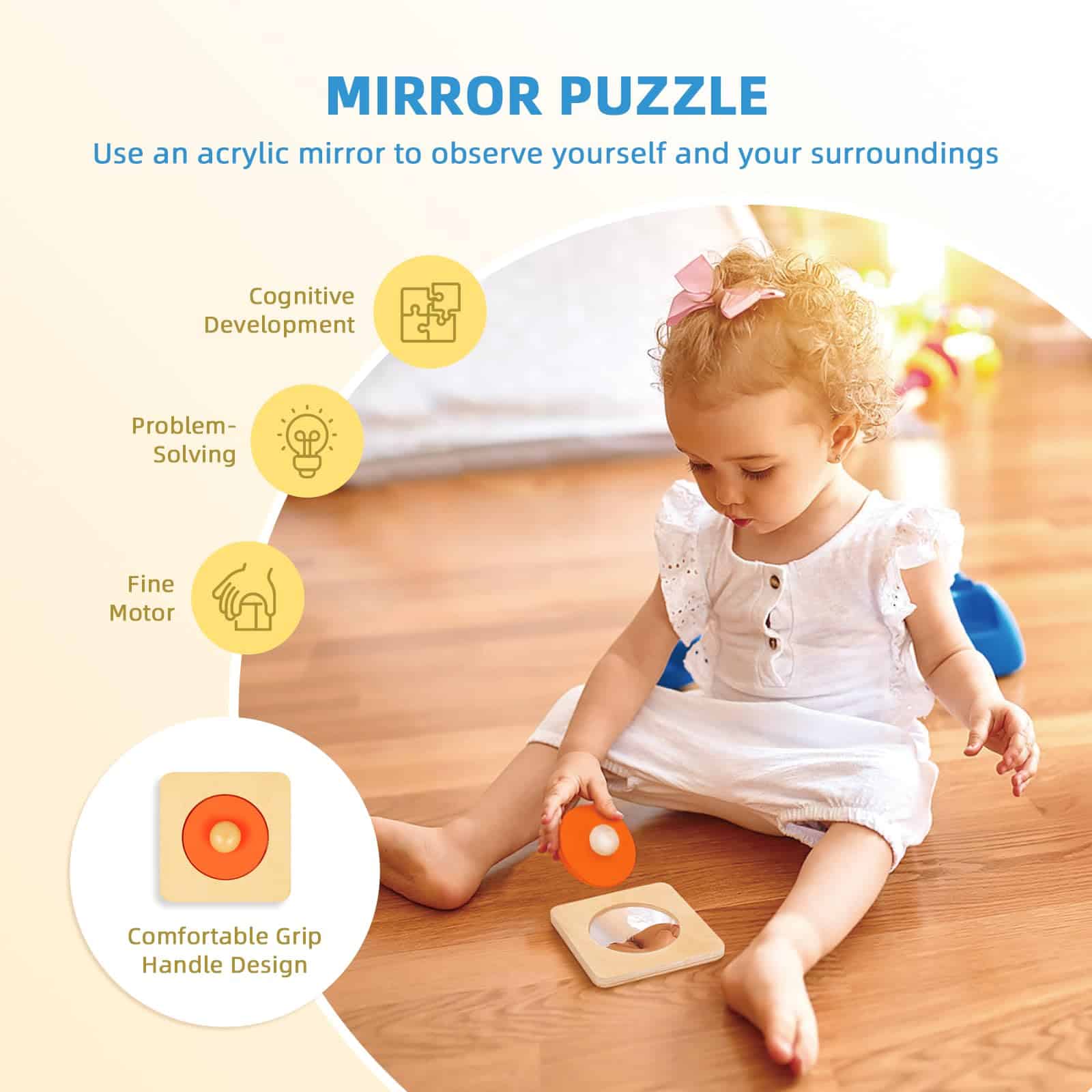 1. MONTESSORI TOYS FOR 1 Year Old – OOOK ha desarrollado una serie de juguetes educativos dirigidos a niños de 1 año, que incluye 4 juguetes básicos (Set de Bolas Empujadoras, Clasificador de Formas, Rompecabezas de Espejo, Caja de juguetes de tela). 2. MANUAL DE INSTRUCCIONES – El set de juguetes Montessori incluye una guía para padres, proporciona una introducción a las funciones del producto y «cómo jugar». Puede ayudar a los bebés a explorar su entorno. 3. Set EDUCATIVO – Perfecto para bebés en su Iluminación Educativa, este set de juguetes educativos puede desarrollar habilidades en diferentes etapas, como visión, clasificación de formas, contar, distinguir diferentes colores y pensamiento lógico. 4. SEGURO Y DURADERO – Nuestros juguetes Montessori de madera están hechos de madera natural y recubiertos con pintura acuosa suave y no tóxica. Los pasadores reforzados en la superficie lisa y los bordes redondeados garantizan la seguridad de los niños. 5. REGALO PARA Niños – Sorprende a los nuevos padres con el regalo perfecto para el baby shower, cumpleaños, vacaciones o cualquier ocasión especial. ¡Este set de juguetes sensoriales Montessori definitivamente sacará una gran sonrisa a tu pequeño bebé!