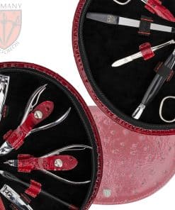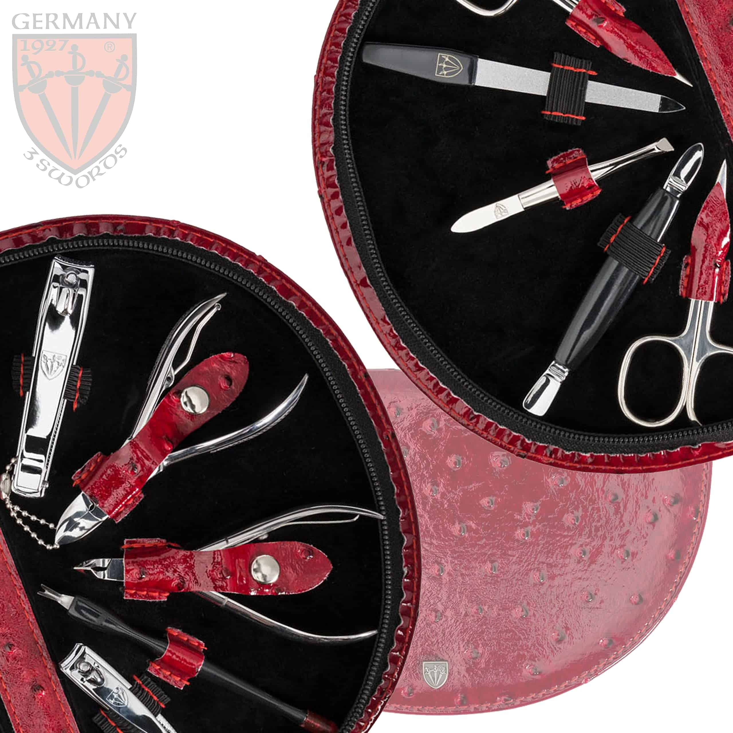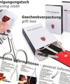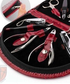 Set de CUIDADO DE UÑAS 3 Swords Germany con herramientas de manicura y pedicura profesionales. Nuestros sets para uso en casa y viajes convencen por los más altos niveles de calidad, diseño moderno, durabilidad e ingeniería alemana combinados con un servicio al cliente de primera clase. Contenido: tijeras para uñas, tijeras para cutículas, cortauñas, cortaúñas para cutículas, cortauñas para dedos, cortauñas para dedos de los pies, lima de uñas de zafiro, removedor de cutículas, doble instrumento (empujador/limpiador), pinzas. Instrumentos de acero: hechos a mano, niquelado brillante (protección contra la corrosión), pulidos y endurecidos. Todos los estuches vienen en una atractiva caja de regalo. Los instrumentos son fabricados por 3 Swords desde 1927. Estuche: imitación de cuero piel de avestruz rojo, tamaño aprox. 28,5 x 14,0 x 2,5 cm. Nuestros organizadores están hechos de materiales de moda o clásicos de alta calidad. Equipamiento adicional: paño de microfibra para limpiar artículos de acero, hoja informativa general de Cuidado de Uñas – Dedos. GARANTÍA DE SATISFACCIÓN: ¡Por favor, CONTÁCTENOS DIRECTAMENTE, SIEMPRE encontramos una solución! Un set de belleza 3 Swords es un regalo perfecto para mujeres, niñas y hombres, ideal para NAVIDAD, cumpleaños, día de las madres/padres, matrimonio, día de acción de gracias y día de san valentín!
