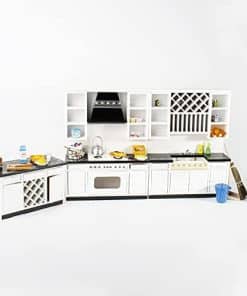 Este lujoso set de cocina es una pieza indispensable en la artesanía en miniatura. Incluye 3 accesorios detallados para crear una cocina completa.