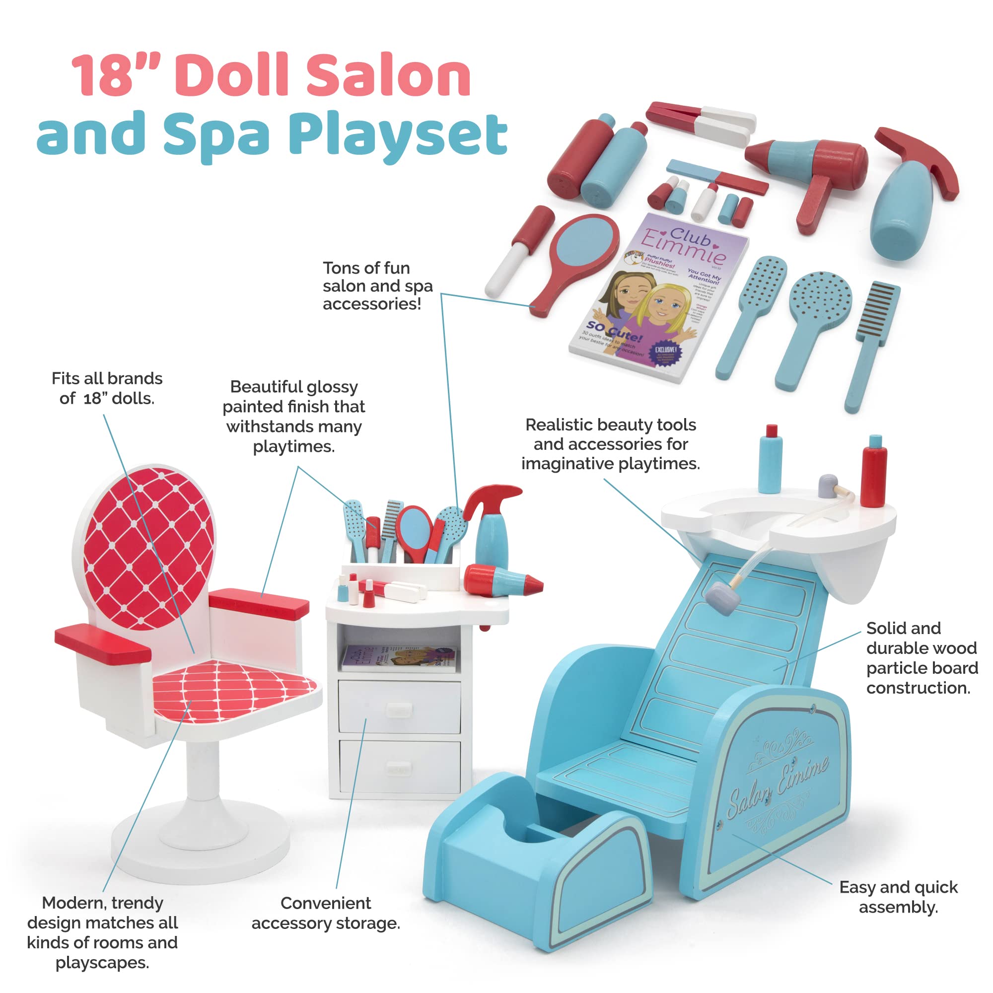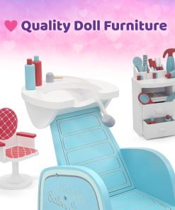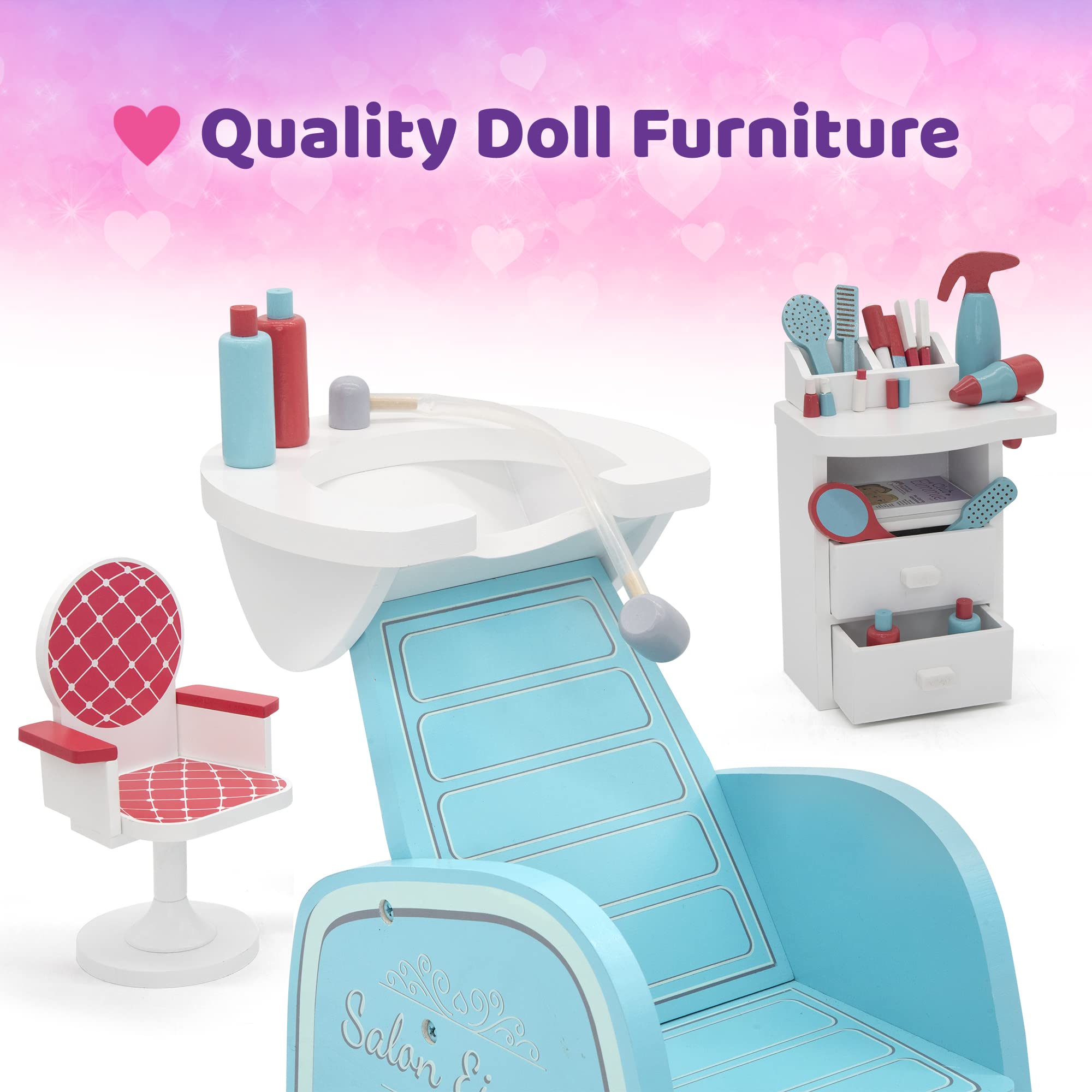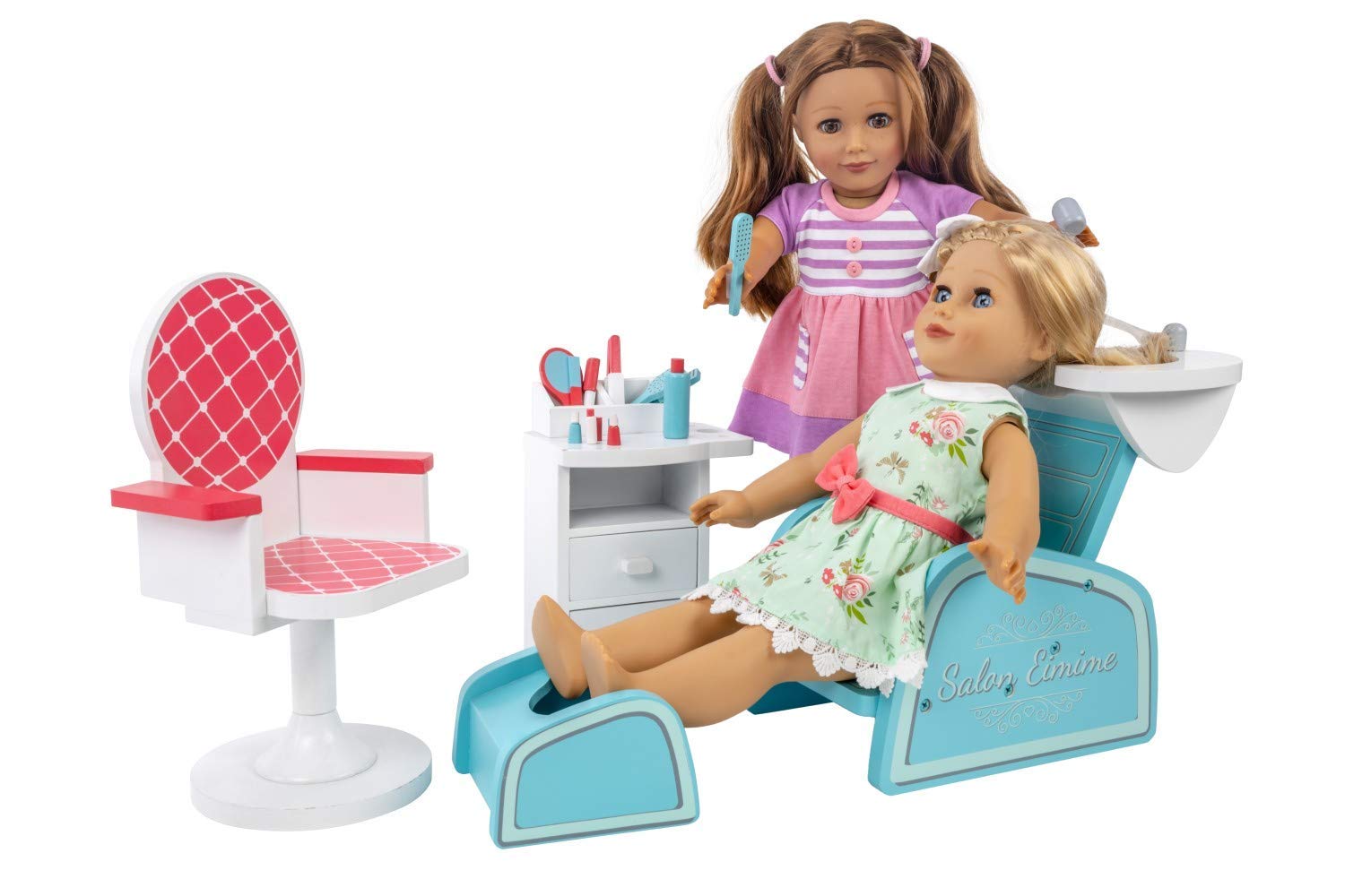 2. Muebles de muñecas de madera de calidad: mejora tu experiencia de muñeca de 18 pulgadas dándole todas las capacidades de un juego de salón de belleza de mentira. ¡El elegante diseño del set de juguete de madera se ajustará a los estándares de autocuidado de cualquier muñeca!