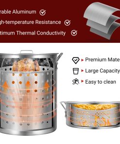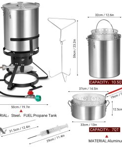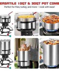 Este set de olla freidora de propano RYHOFOUD es perfecto para uso exterior. El combo incluye una olla de 10QT y otra de 30QT, ideales para freír tus alimentos favoritos al aire libre. Con un diseño en color plata, estas ollas son duraderas y fáciles de limpiar. ¡Disfruta de deliciosas comidas fritas en tu jardín o patio con este set de olla freidora de propano!