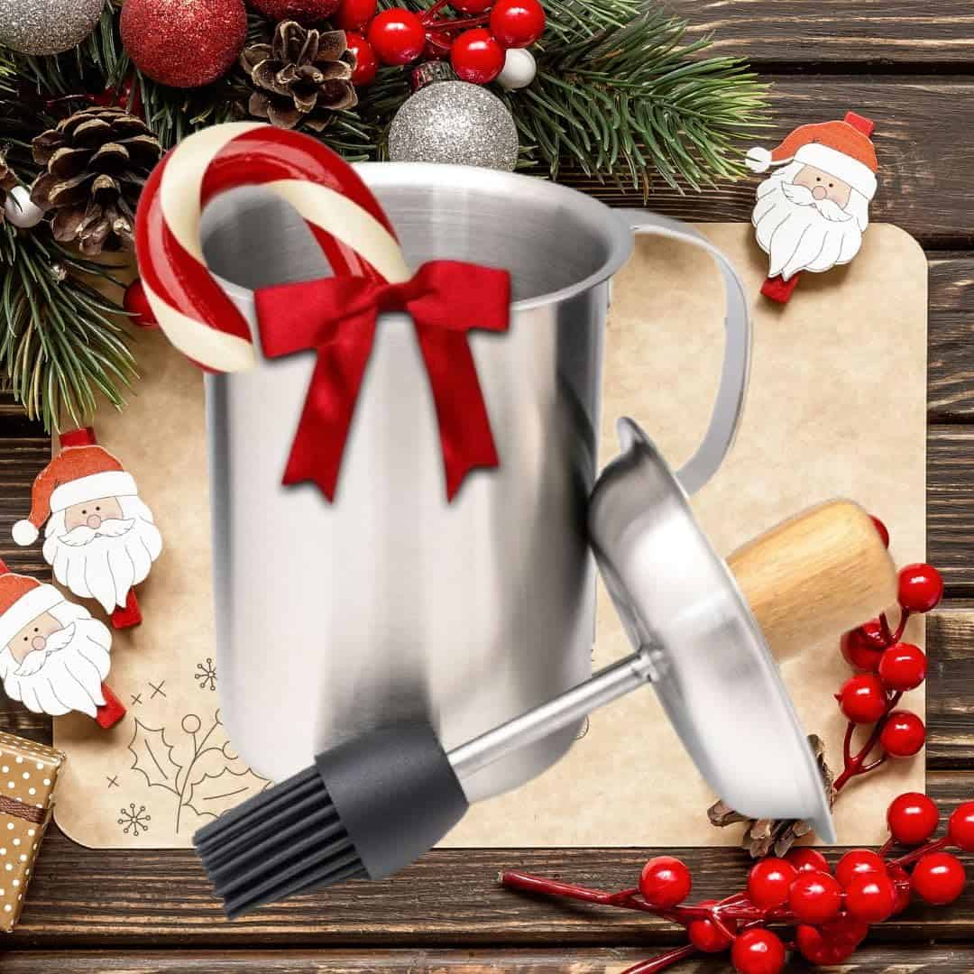 Mantén las cosas ordenadas y sabrosas con tu elegante juego de Olla para Salsa y Brocha de Acero Inoxidable