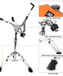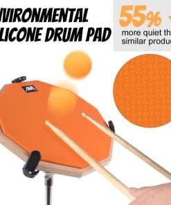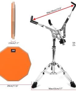 El conjunto de pads de práctica de batería AKLOT es perfecto para practicar en cualquier momento y lugar. La almohadilla de práctica de batería cuenta con una superficie de silicona de alta elasticidad y resiliencia que ofrece una gran respuesta y jugabilidad. El EVA de algodón y la resistente placa de álamo ofrecen un buen efecto de absorción del sonido y una fuerte capacidad anti-golpes. El soporte flexible se ajusta a tambores de 8″ a 15.6″ de diámetro, con agarre de brazo de goma, diseño plegable y de doble refuerzo para estabilidad. Altura ajustable de 59cm (23″) – 75cm (31″). La bolsa resistente y portátil viene con un pad de práctica profesional que puede contener todos los kits indispensables en el entrenamiento. Incluye baquetas y una garantía de 45 días. ¡Haz tus prácticas de batería aún más placenteras con este completo set de pads de práctica!