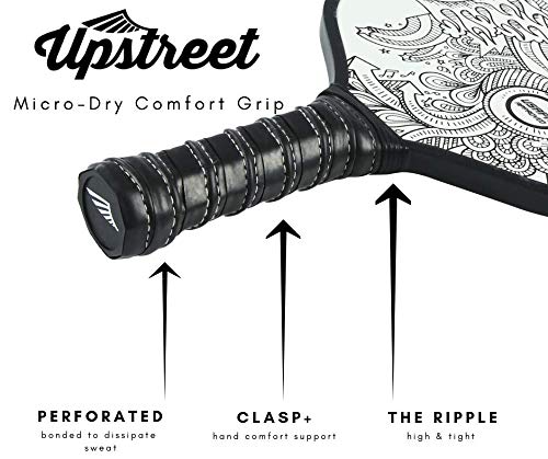La raqueta de pickleball de Upstreet tiene un diseño único y hermoso que es ideal para jugar a los juegos de pickleball con familiares y amigos. Este set de pickleball incluye una funda acolchada muy conveniente para almacenar y transportar la raqueta de pickleball. Esta raqueta de pickleball está hecha de un núcleo de polímero de nido de abeja que proporciona más potencia y gran control de la pelota, siendo una gran elección para aquellos que aprecian una raqueta de alta calidad. El agarre acolchado de alta gama es muy cómodo de usar y absorbente del sudor. Apto para adultos, tanto profesionales como principiantes, estas palas de pickleball son de gran calidad y se adaptan bien a diferentes niveles de jugadores. Con nuestra garantía de devolución, puedes estar seguro de tener una experiencia satisfactoria al usar nuestro set de pickleball