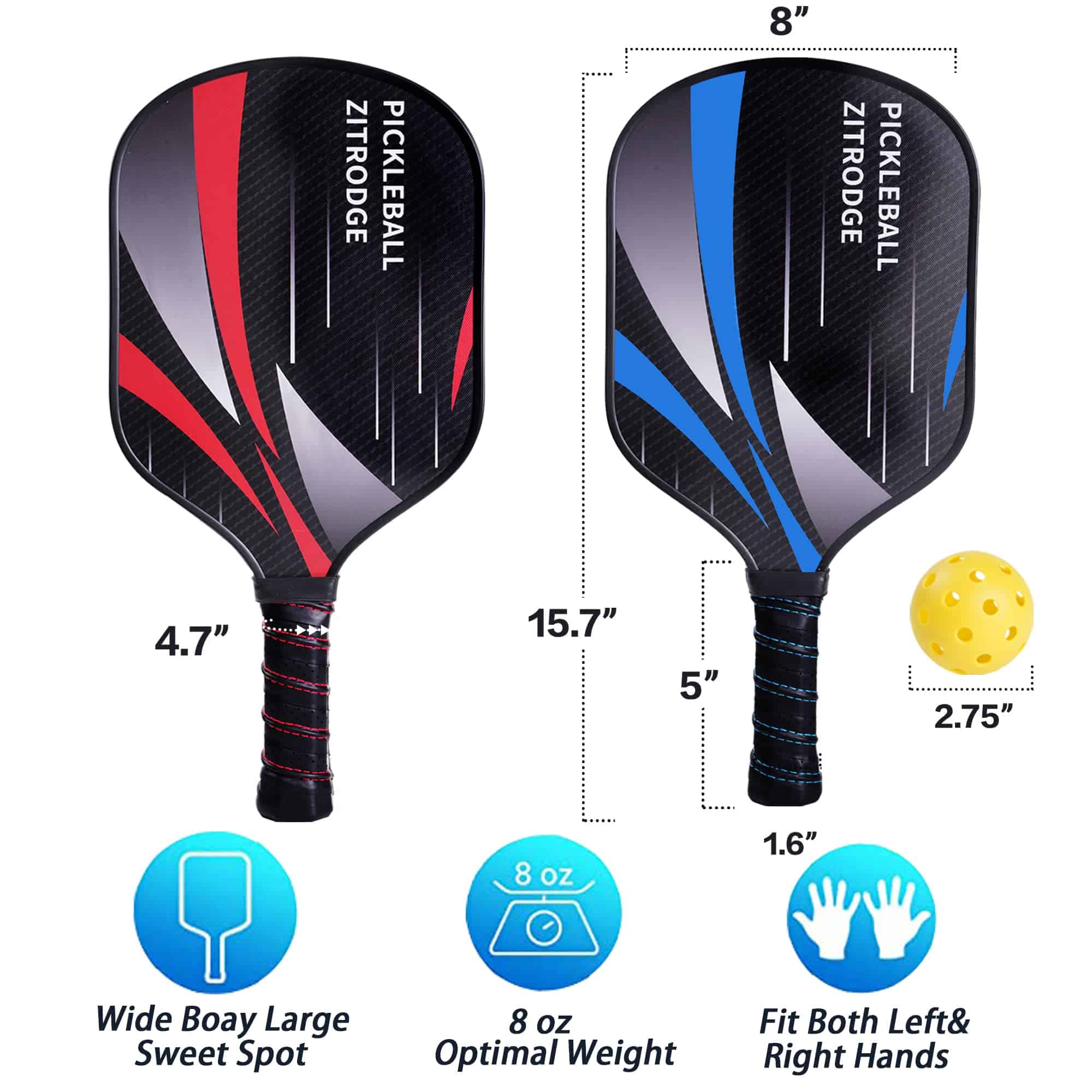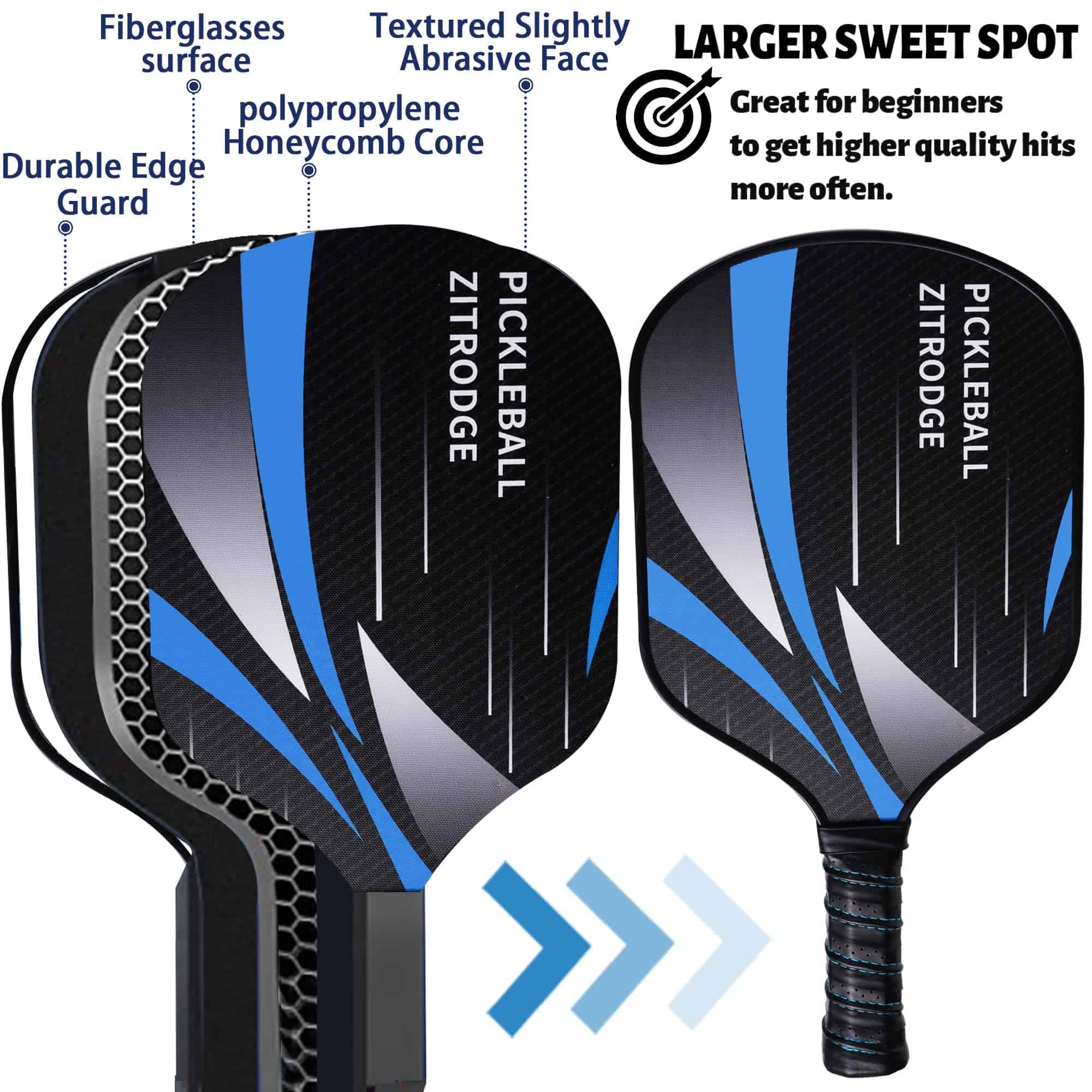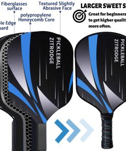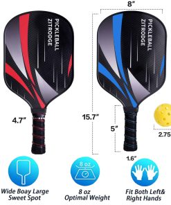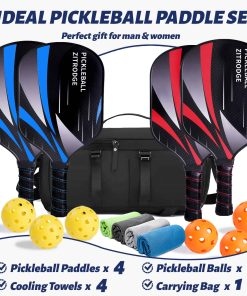 Set de Palas de Pickleball, Palas de Pickleball de Fibra de Vidrio con 6 Pelotas de Pickleball y 1 Bolsa, Regalos de Pala de Pickleball para Mujeres Hombres Principiantes. Obtén todo lo que necesitas para un divertido juego de pickleball con el set de Zitrodge – 2 palas duraderas, 4 pelotas de alto rendimiento, 2 toallas refrigerantes y 2 bolsas de transporte. Perfecto para que familiares y amigos disfruten juntos. Hecho con una superficie de fibra de vidrio y una composición de polipropileno y panal, nuestras palas ofrecen un nivel ideal de fuerza y rigidez con un diseño sorprendentemente ligero. El área ancha de la raqueta proporciona más puntos dulces para el disparo perfecto. Incluso los principiantes pueden atrapar fácilmente la pelota. Con un patrón elegante, es la elección perfecta para cualquiera que quiera mejorar su juego. El agarre suave con agujeros de ventilación que absorben el sudor asegura que nunca te fatigues durante largas sesiones de juego. Minimiza el deslizamiento para darte un movimiento de muñeca perfecto y rotación flexible. El set de Zitrodge es un regalo ideal para cualquier persona que ame el pickleball, ya sea tu madre, padre, hijo o amigo. Ideal para escuelas, centros comunitarios, clubes atléticos y YMCA.