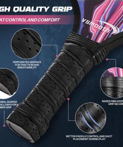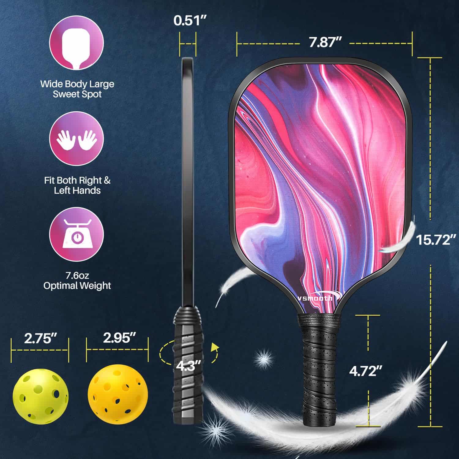 El set de palas de pickleball Vsmooth viene con dos palas de pickleball de superficie de fibra de vidrio, cuatro pelotas de pickleball, y bolsas de pickleball para regalos. Diseñado con un núcleo de panal ligero y un agarre antideslizante absorbente de sudor, este set garantiza una experiencia de juego cómoda y eficaz. Las palas de pickleball cuentan con un gran punto dulce en su superficie, lo que las hace ideales para principiantes y perfectas para proporcionar entretenimiento en diferentes lugares de juego, como canchas interiores y exteriores, y patios traseros. Fabricadas con fibra de vidrio y núcleo de polímero compuesto de panal, las palas de Vsmooth ofrecen una combinación perfecta de control y potencia en el juego. Además, el set incluye una bolsa portátil con capacidad suficiente para llevar todas tus cosas a la cancha. ¡Contáctanos si tienes alguna pregunta y te responderemos en un plazo de 24 horas!