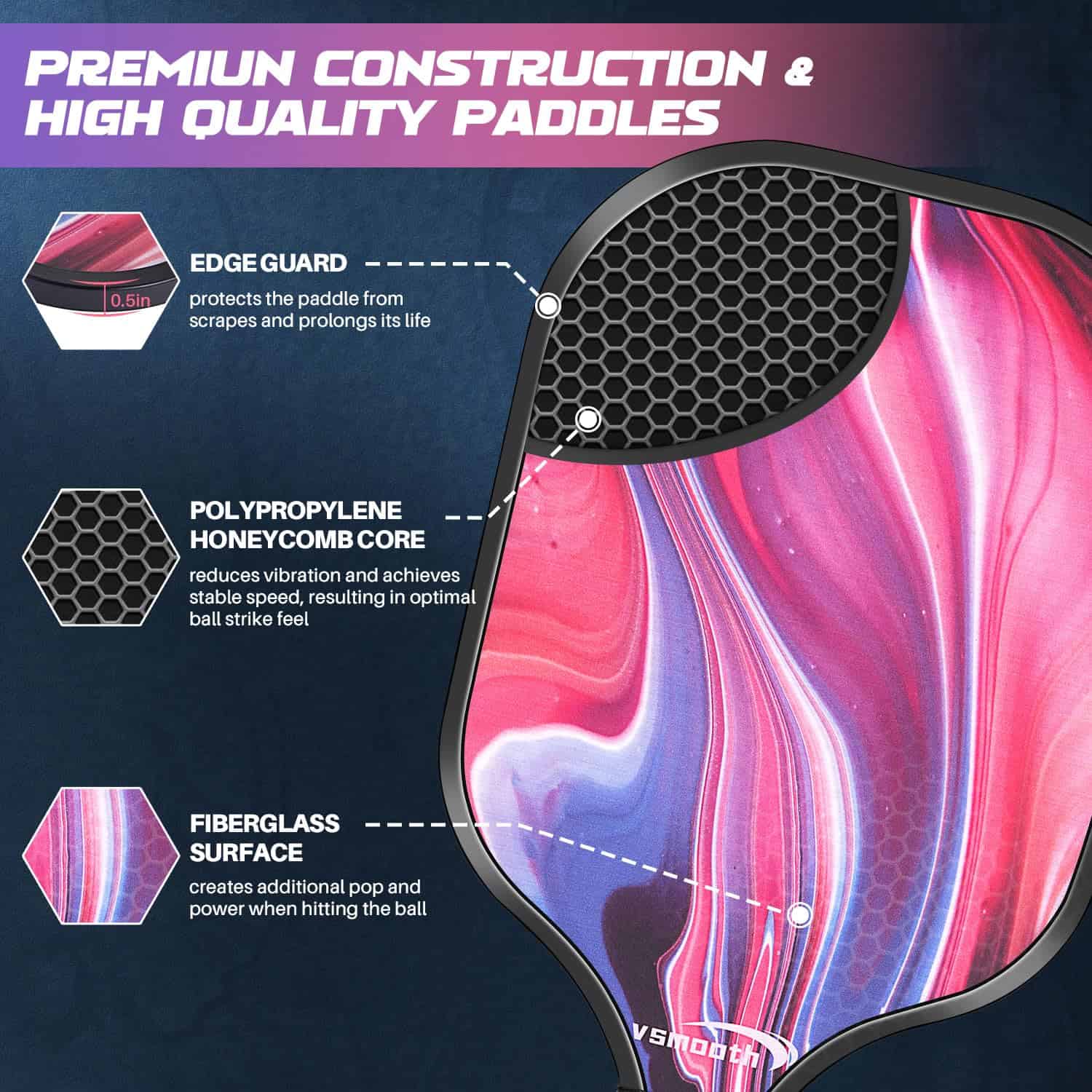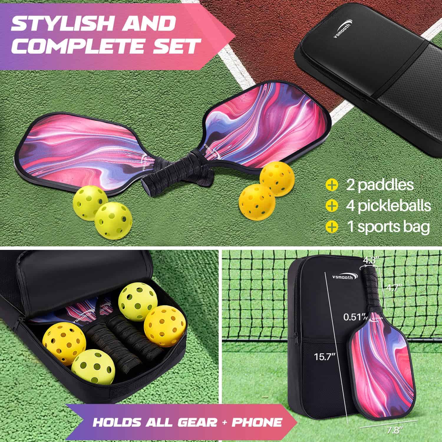 Set de Palas de Pickleball Vsmooth de 2 Superficie de Fibra