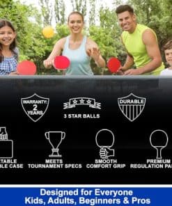 3. MEJORA TU JUEGO DE PING PONG – no importa cuán experimentado seas, nuestras duraderas palas con buen agarre están diseñadas para mejorar tu fuerza y precisión. Mientras que nuestras pelotas de 3 estrellas estándar de competición te ofrecen un tiro y rebote más predecibles que otras pelotas en el mercado, mejorando tu confianza y tus resultados!.