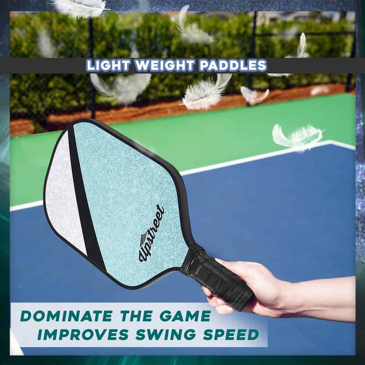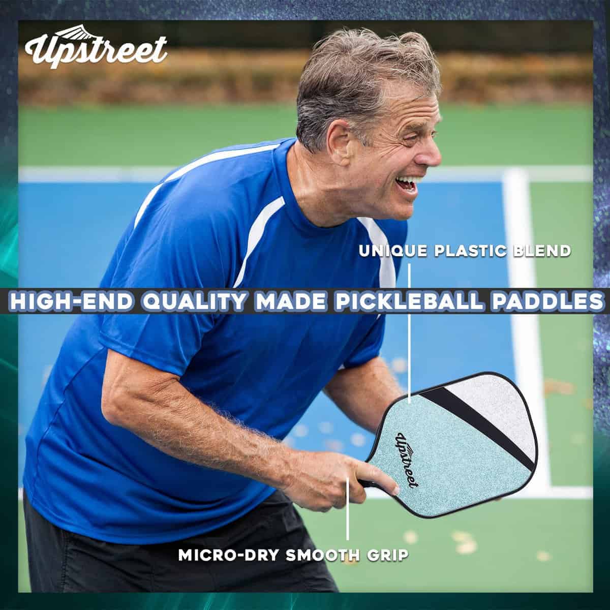 Set de Paleta de Pickleball Upstreet | Tigre de Purpurina Oro Azul Plata | Paletas de Pickleball Incluyen Funda Acolchada, Paletas de Pickleball de Composición de Panal de Abeja Ligero para Mujeres y Hombres – Gran Paleta de Pickleball: La paleta de pickleball de tigre de Upstreet tiene un diseño de color único y hermoso que es ideal para jugar juegos de pickleball con familia y amigos. Este set de pickleball incluye una funda acolchada que es muy conveniente para almacenar y transportar la raqueta de pickleball. – Profesionalmente Hecho: Este set de pickleball está hecho de un núcleo de polímero de panal de abeja que proporciona más potencia y un gran control de la pelota. Esta raqueta de pickleball sigue siendo una gran opción para aquellos que aprecian una raqueta de alta calidad. Tamaño de la paleta es de 41.9×18.9.x2.8cm. – Diseño de Agarre Ergonómico: La raqueta o set de pickleball de Upstreet está creada con un agarre acolchado de alta calidad, muy cómodo de usar y absorbente del sudor. La longitud del agarre de esta paleta de pickleball es de 4.6 pulgadas y la circunferencia del agarre es de 4.4 pulgadas ideal para manos de tamaño promedio. – Apto para Adultos: Estas paletas de pickleball son perfectas tanto para profesionales como para principiantes. Estas son raquetas de pickleball bien construidas y, como tales, son de gran calidad. Los mangos corresponden bien tanto a principiantes como a jugadores más avanzados. – Garantía de Devolución: Nos preocupamos por ti y queremos que tengas la mejor experiencia al usar nuestro mejor set de paletas de pickleball. Si ocurren problemas, no dudes en contactarnos y estaremos encantados de ayudarte con cualquier reembolso