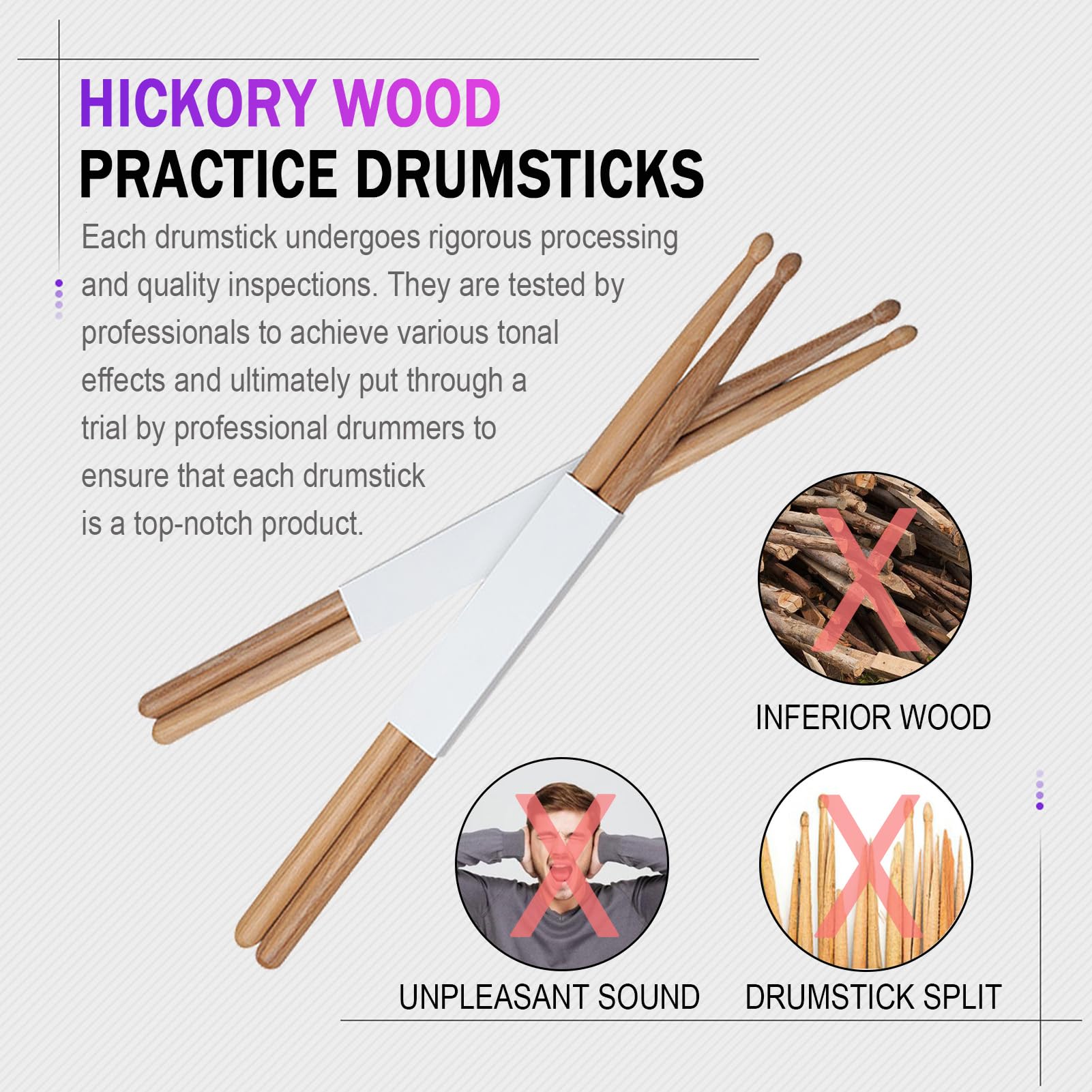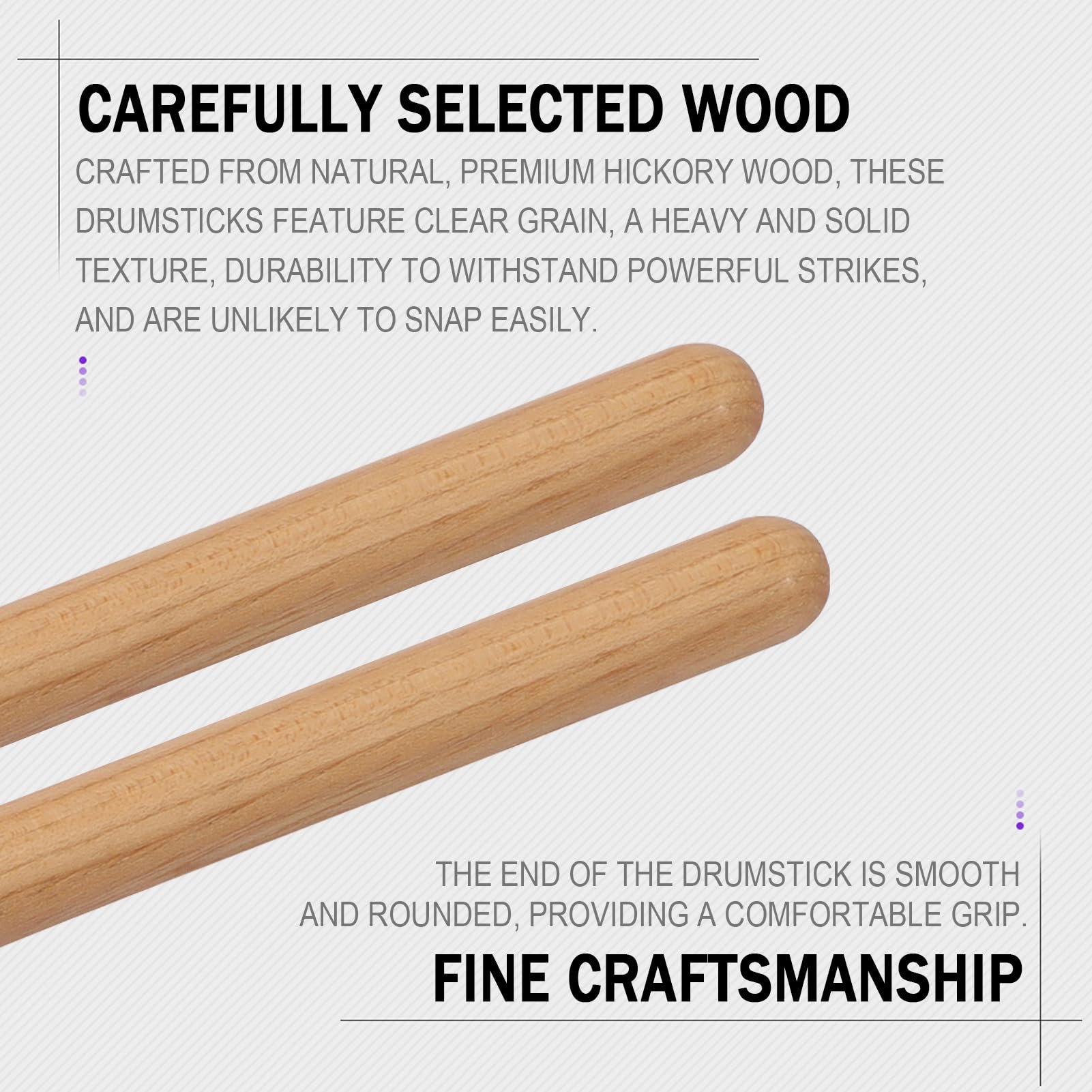 Ya sea para la práctica diaria o para preparativos de actuaciones, este set de palillos de tambor de hickory es un compañero esencial del que no puedes prescindir. Es una excelente elección tanto para uso personal como para regalo.
