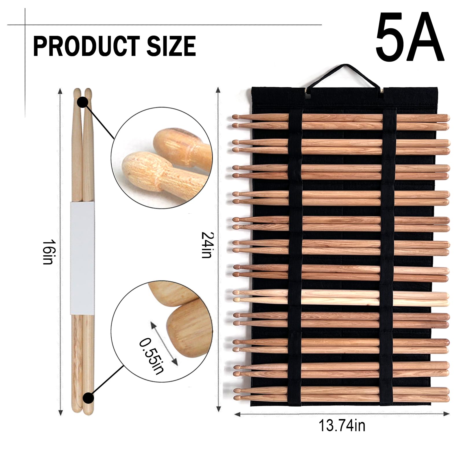 Paquete Incluye: 12 pares de palillos de tambor 5A, 1 soporte de palillos de tambor.