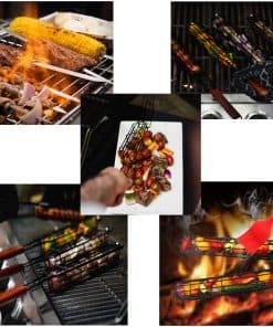 Qué hay en la Caja: 6 juegos de Cestas de Parrilla 6 piezas de Brochetas para Barbacoa 1 cepillo de barbacoa Por qué Elegirnos: Perfecto para asar y barbacoa de carne, pollo, verduras, albóndigas y más ¡No más kabobs estresantes! Prepárate para impresionar a tus invitados con kabobs perfectamente asadas. Las Cestas de Parrilla de Brochetas son la respuesta para las personas que quieren hacer kabobs de forma más rápida y fácil. Antes de usar estas Cestas de Parrilla Mientras el revestimiento es antiadherente, te sugerimos que rociar ligeramente cada cesta con aceite antes de usarla. El Tubo de Ahumador es ligero y portátil, lo que hace que sea extremadamente fácil de limpiar después de cada uso. ATENCIÓN: Se recomienda lavar a mano.