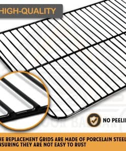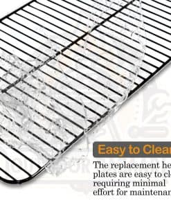 Si estás buscando una forma de mejorar tus modelos de parrilla Charbroil Classic 3 Burner, es posible que desees considerar nuestro Set de Parrilla de Cocina de Acero Porcelanizado y Tres Placas de Calor de Reemplazo de Acero Inoxidable. Estas son piezas de repuesto de parrilla clásica de Charbroil de alta calidad que se ajustarán perfectamente a tu parrilla y mejorarán tu experiencia de cocción. Aquí están algunas de las características y beneficios de nuestros productos: Los Protegequemadores Charbroil classic 3 quemadores están hechos de acero inoxidable duradero que puede soportar altas temperaturas y evitar llamaradas. También ayudan a distribuir el calor de manera uniforme en toda la superficie de cocción, asegurando que tu comida se cocine de manera uniforme y completa. Las Rejillas de cocción de parrilla 463742418 Charbroil están hechas de acero porcelanizado que es fácil de limpiar y mantener. Tienen una superficie antiadherente que evita que los alimentos se peguen y se quemen. También tienen un acabado suave y brillante que añade un toque de elegancia a tu parrilla. Nuestras piezas de repuesto de parrilla classic 3 quemadores de Charbroil son no tóxicas y seguras para cocinar. No contienen sustancias químicas o sustancias dañinas que podrían afectar tu salud o el sabor de tu comida. Puedes disfrutar de tus platos a la parrilla sin preocupaciones. Estas piezas de repuesto de parrilla classic 3 quemadores de Charbroil son fáciles de instalar y reemplazar. No necesitas herramientas especiales ni habilidades para instalarlas en tu parrilla. Nuestro Set de Parrilla de Cocina de Acero Porcelanizado y Tres Placas de Calor de Reemplazo de Acero Inoxidable para modelos de parrilla Charbroil Classic 3 quemadores es la solución perfecta para tus necesidades de parrilla. Ordena el tuyo hoy y disfruta de los beneficios de nuestras piezas de repuesto de alta calidad para cocina al aire libre. INFORMACIÓN DEL PRODUCTO Incluye 3 x placas de calor Charbroil y 1 x parrilla de cocción Dimensiones de la protección térmica: 13″ (Longitud) x 4″ (Ancho) Dimensiones de la rejilla de la parrilla: 25 3/16″ (Longitud) x 13 12/16″ (Ancho) Material de la rejilla de cocción: Acero Porcelanizado Material del protector de calor: Acero inoxidable COMPATIBILIDAD DE LAS PIEZAS DE PARRILLA CLASSIC CHARBROIL Sustituye a G215-0203-W, G215-0203-W1, G305-0006-W1 Piezas de repuesto para parrillas de gas Charbroil classic de 3 quemadores: 463742418 y más. Antes de realizar un pedido, asegúrese de medir el tamaño de sus piezas originales de 3 quemadores de parrilla classic Charbroil para garantizar un ajuste perfecto