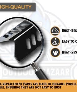 Transforma tu experiencia de parrilla y dale a tu Parrilla Master Cook de 3 Quemadores de Gas una nueva vida con nuestro completo Set de 2 Rejillas de Cocción de Acero Porcelanizado y 3 Placas de Calor de Acero Porcelanizado. Diseñado para elevar tu juego de cocina al aire libre, este conjunto combina durabilidad, precisión y seguridad para un rendimiento de parrilla superior. Cada placa de calor Master Cook de acero porcelanizado mide 14 3/16 pulgadas de largo y 3 13/16 pulgadas de ancho, garantizando una distribución de calor completa y uniforme en toda tu parrilla. Di adiós a las comidas cocinadas de manera desigual y da la bienvenida a resultados consistentes con estas placas de calor de repuesto perfectamente dimensionadas. La rejilla de la parrilla de cocción de acero porcelanizado, que viene en un set de 2 unidades, tiene dimensiones de 15 11/16 pulgadas de largo y 10 1/2 pulgadas de ancho. Fabricadas con acero porcelanizado de alta calidad, estas parrillas de parrilla Master Cook brindan una superficie resistente y confiable para tus creaciones culinarias. La naturaleza no tóxica del material asegura que tu cocina permanezca segura y libre de sustancias dañinas. Invierte en piezas de repuesto de alta calidad de Master Cook que resisten el paso del tiempo. Las placas de calor de acero porcelanizado para la parrilla Master Cook de 3 quemadores ofrecen durabilidad y resistencia, mientras que las rejillas de parrilla de acero porcelanizado garantizan una superficie de cocción resistente que es fácil de limpiar y mantener. Disfruta de la tranquilidad que viene con materiales seguros y no tóxicos, lo que te permite concentrarte en crear deliciosas comidas para tu familia y amigos. Revitaliza tu parrilla de gas con este set premium de piezas de parrilla Master Cook. Eleva tu experiencia de parrilla, cocina con confianza y disfruta del excepcional rendimiento de estos componentes de alta calidad.