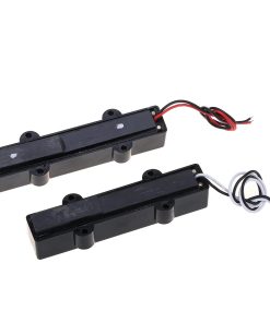 Set de pastillas de bajo Jazz de 5 cuerdas para bajo eléctrico estilo JB Wilkinson M-series WOJB5 con Gauss Variable en color negro. Creadas con la nueva tecnología «Vari-Gauss», estas pastillas mantienen las frecuencias graves profundas mientras que los agudos suenan más suaves pero bien definidos. Ideales para darle a tu bajo un auténtico tono brillante de Jazz de los años 60. Además, cuentan con una resistencia DC de 9.8K para la pastilla de mástil y 10.5K para la pastilla de puente, con un imán de cerámica. Cada pastilla incluye dos cables conductores para una fácil instalación. Perfectas para cualquier amante de la música que busque mejorar el sonido de su instrumento. ¡Hazte con ellas hoy mismo!