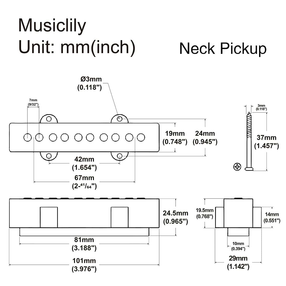 Set de Pastillas de Bajo Jazz de 5 Cuerdas para Bajo