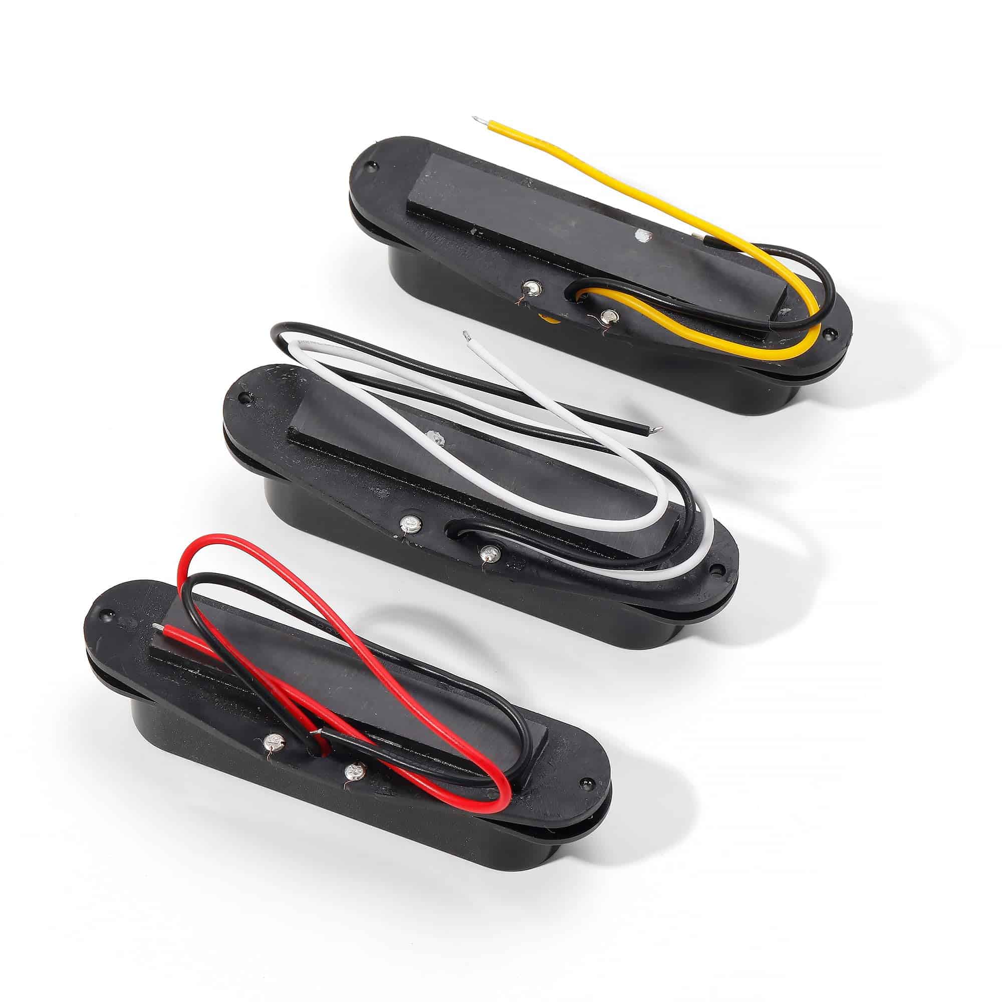 Set de pastillas de bobina simple cerámica Wilkinson M Series WOVS SSS para guitarra eléctrica estilo ST Stratocaster (WOVS Negro). Este set de pastillas es ideal para aquellos que buscan mejorar o cambiar el sonido de su guitarra eléctrica estilo Strat. Fabricadas con componentes de alta calidad, estas pastillas garantizan un tono limpio y brillante en los tres diferentes puntos de montaje: mástil, medio y puente. El espaciado de polos cuidadosamente calibrado y la construcción encerada aseguran una óptima respuesta y definición tonal. Además, el imán de cerámica proporciona una salida balanceada y potente. Incluye tornillos y resortes para una fácil instalación. Nota: los tornillos pueden no ser compatibles con todos los modelos de guitarra, se recomienda utilizar los tornillos originales si es posible.