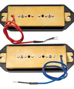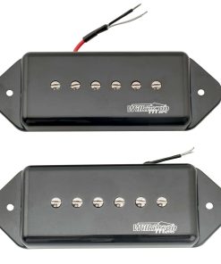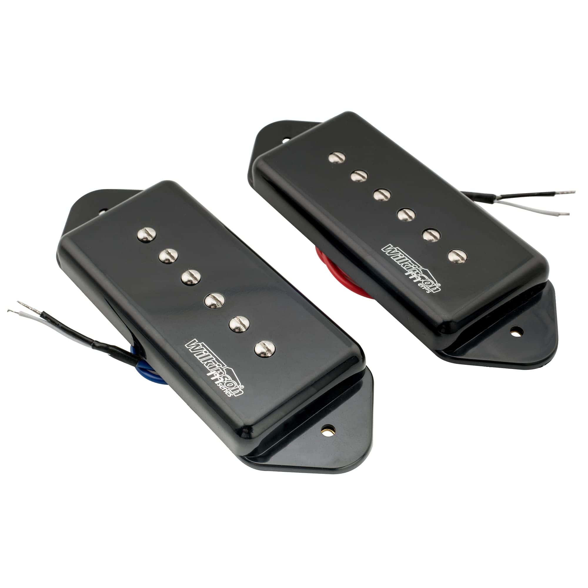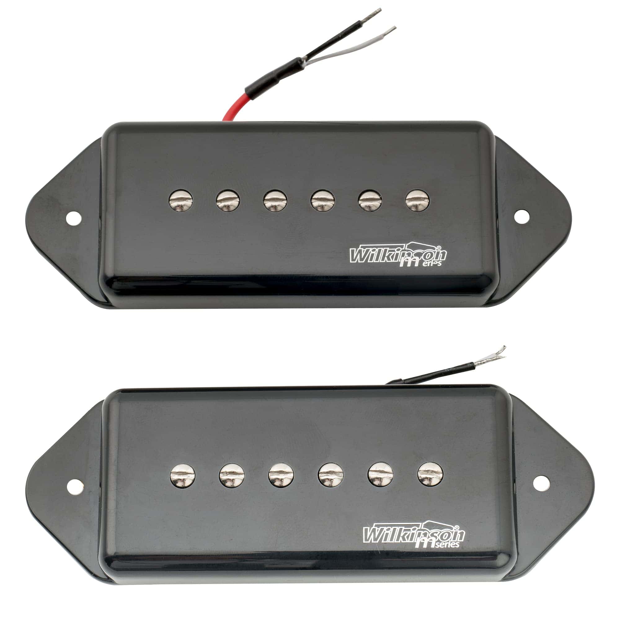 Wilkinson WO90 Low Gauss Iconic Ceramic P90 Dogear Single Coil Pickups Set para Guitarra Eléctrica Les Paul LP SG, Negro. Estas pastillas de bobina simple P90 de cerámica de bajo gauss son ideales para guitarras eléctricas de estilo que requieren una pastilla potente y con un sonido icónico. Diseñadas para adaptarse a modelos de guitarras como SG, LP, serie Axis, Epiphone Casino y Fender Tele. Con piezas genuinas de Wilkinson y enceradas para mayor durabilidad. La resistencia D.C. de la pastilla del mástil es de 8.1K y la del puente es de 9.8K, con un imán cerámico que garantiza un sonido potente y nítido. El paquete incluye 2 pastillas. Nota: Los tornillos incluidos pueden no ajustarse a su guitarra, se recomienda usar los tornillos propios del instrumento para mayor seguridad y estabilidad.