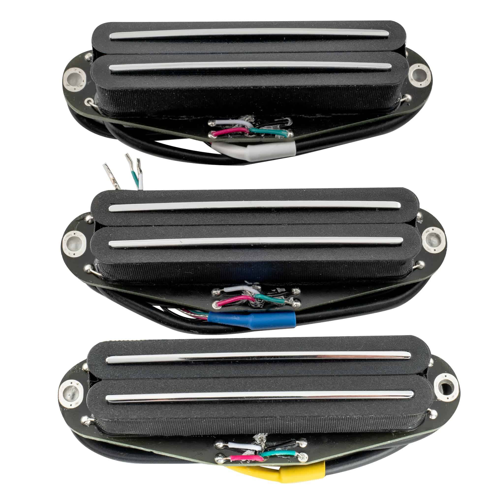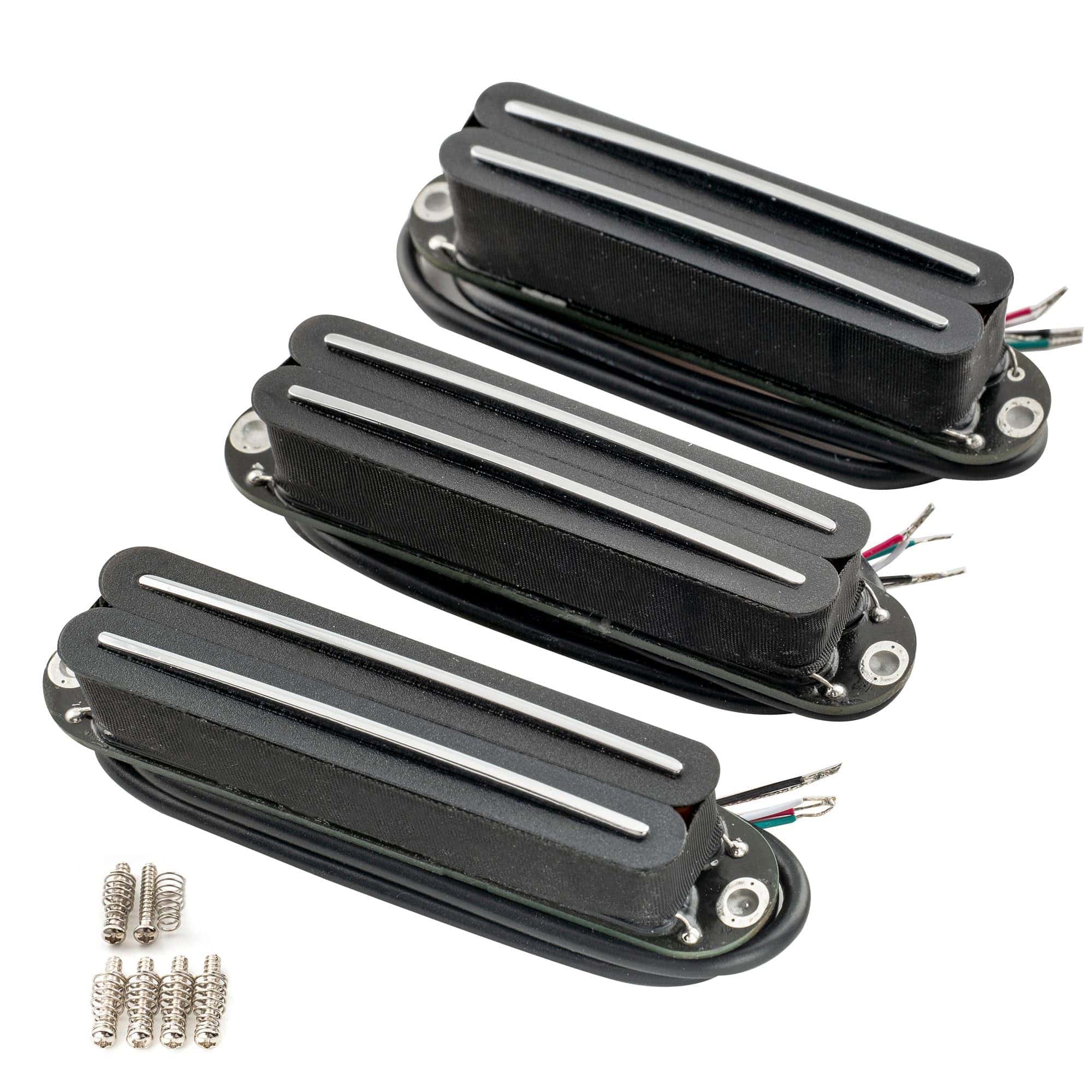 Musiclily Pro Set de Pastillas de Cerámica Dual Hot Rail Single Coil Sized Humbucker Super Distortion para Guitarra Eléctrica Estilo Strat, Negro. Estas pastillas de alta calidad ofrecen un sonido potente y versátil, ideales para músicos que buscan un tono dinámico y definido en su música. Con una construcción robusta y materiales duraderos, estas pastillas están diseñadas para durar y sobresalir en cualquier situación musical. Ya sea que estés tocando suavemente o haciendo riffs pesados, estas pastillas te ofrecen la potencia y claridad que necesitas para destacar en cualquier género musical. Eleva tu sonido con el set de pastillas Musiclily Pro y experimenta una nueva dimensión en tu interpretación musical.