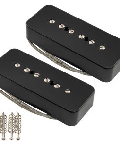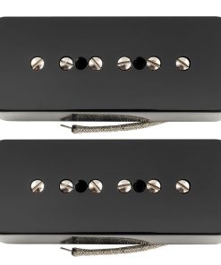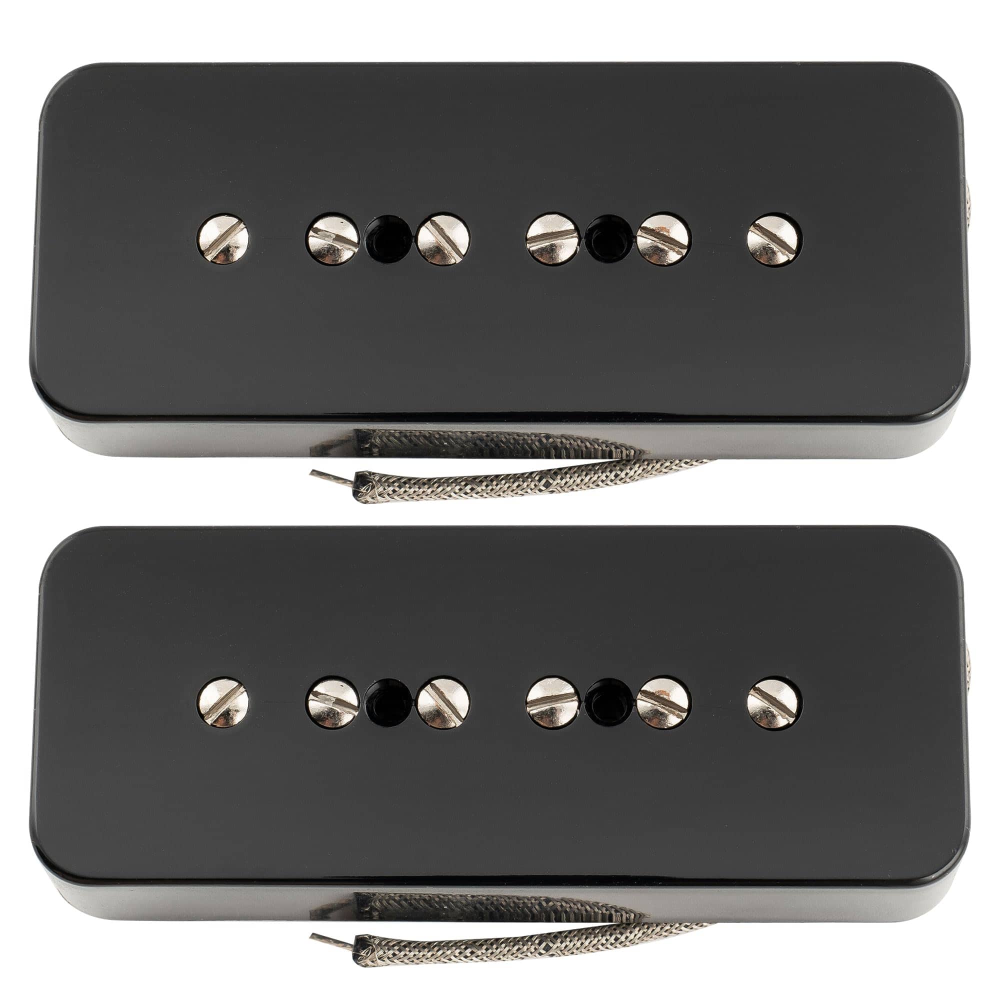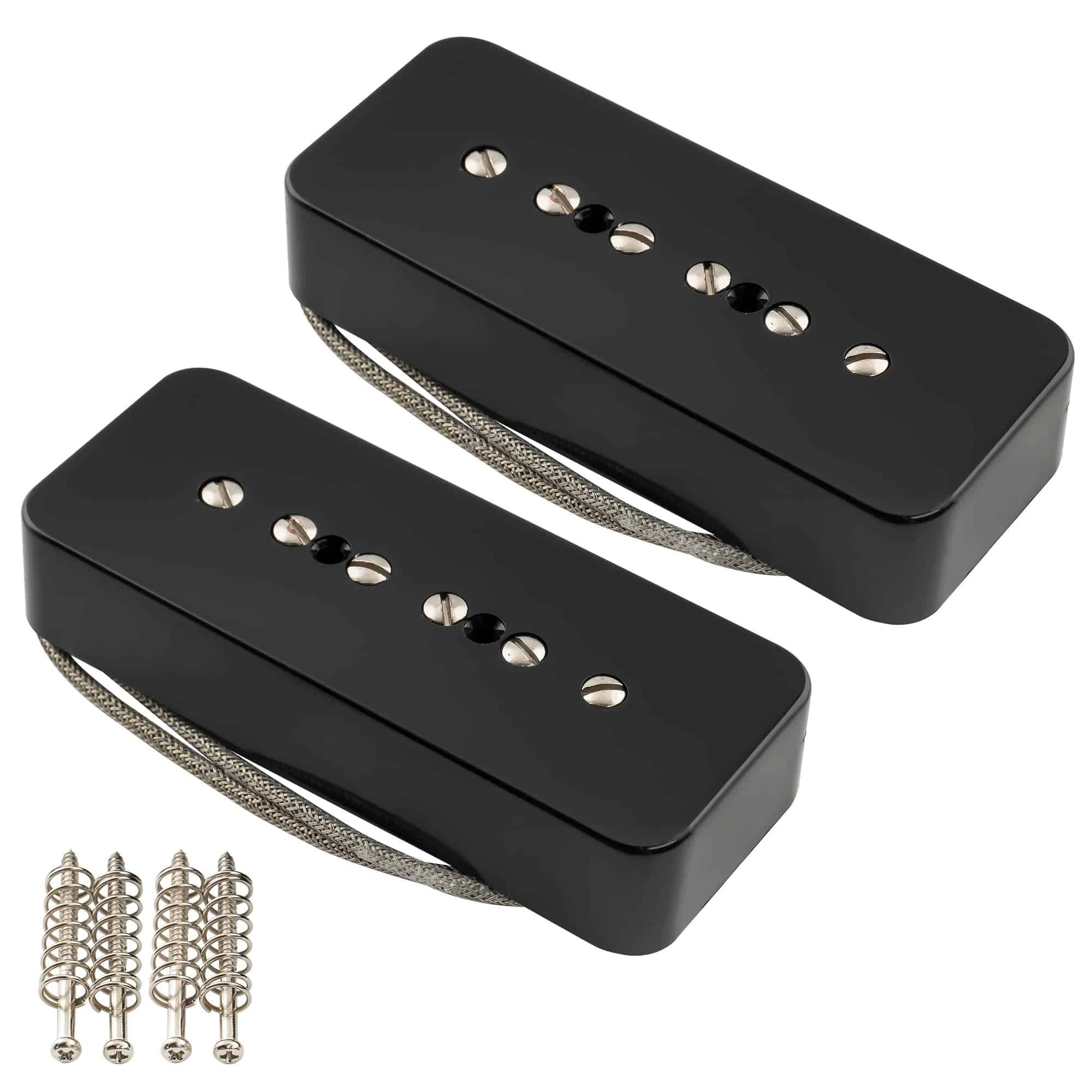 Set de pastillas de guitarra eléctrica para mástil y puente Musiclily Pro P90-MHA Alnico 5 de alto rendimiento de bobina simple tipo soapbar. Las pastillas son de color negro.