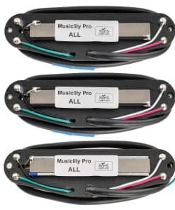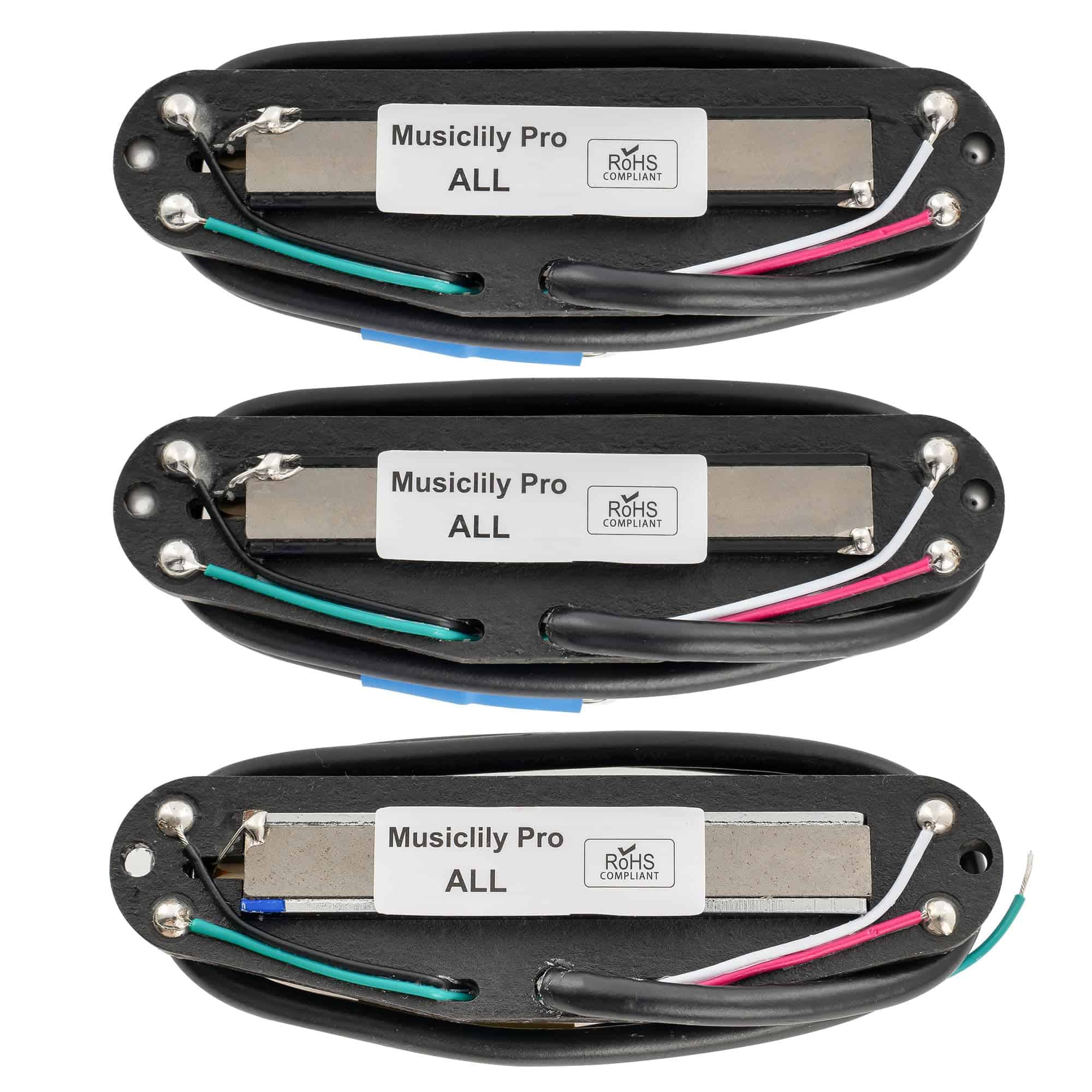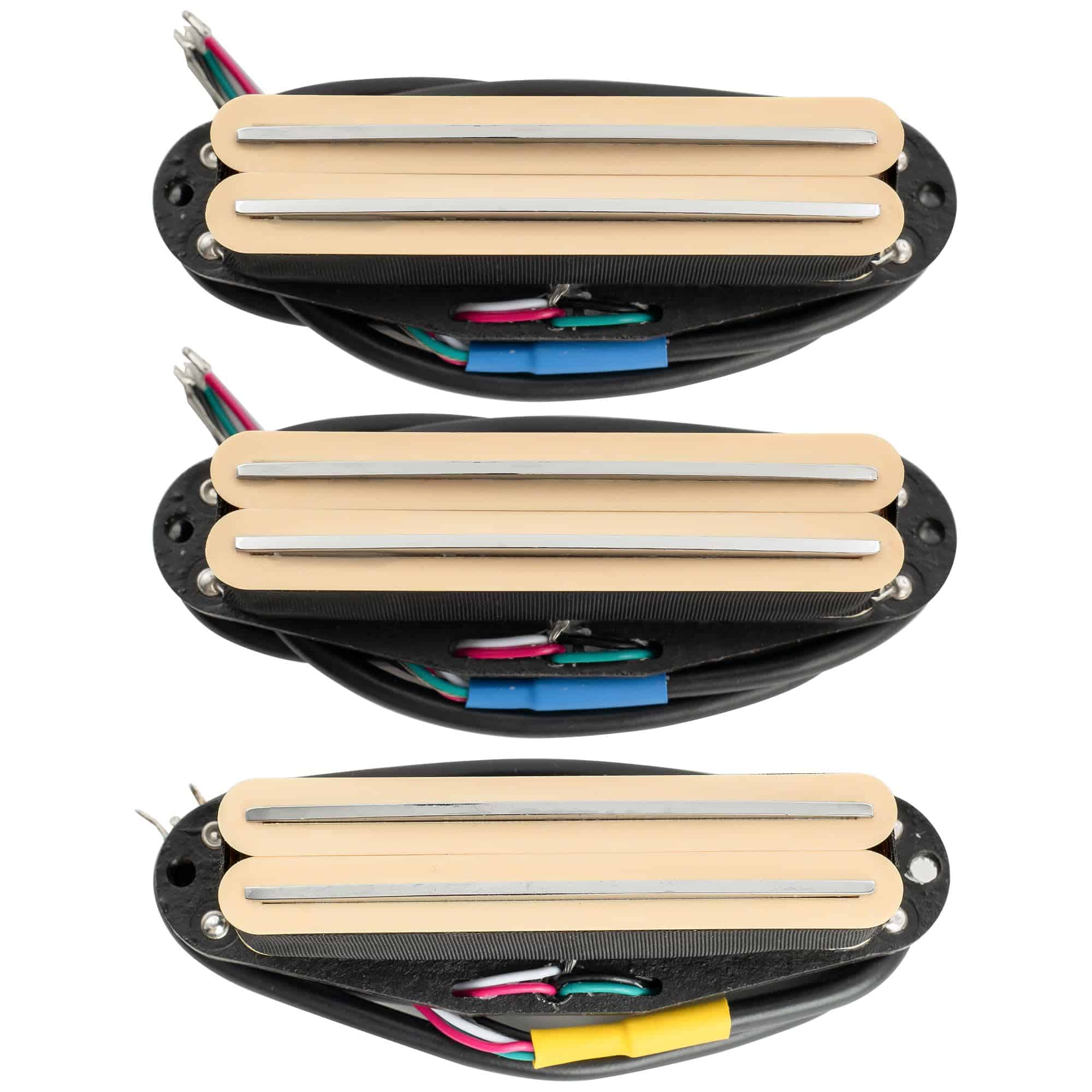 Set de pastillas humbucker dobles de doble bobina tamaño single coil Alnico 5 Pro ST-DPHA de Musiclily para guitarra eléctrica tipo Strat, con cuerpo de crema y riel cromado.