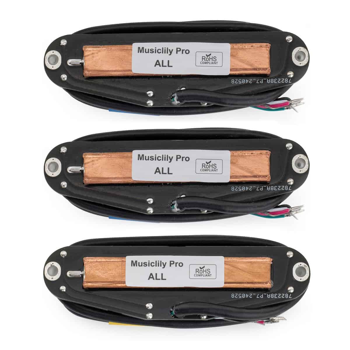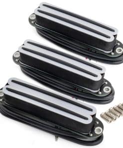 Set de pastillas Musiclily Pro ST-DPHC de riel cerámico de tamaño individual para mástil, medio y puente Super Distortion para guitarra eléctrica estilo Strat, cuerpo blanco riel negro.