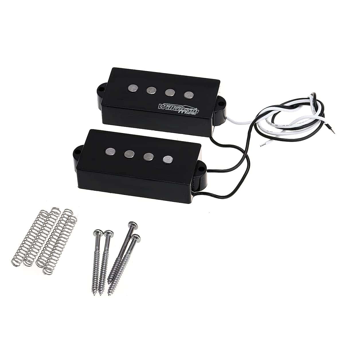Set de Pastillas Humbucker Wilkinson M-series WOPB de Alnico 5 con Gauss Variable para Bajo Eléctrico de 4 cuerdas Estilo PB en color negro. Este set de pastillas te proporciona un sonido clásico vintage de bajo Precision, ofreciendo tonos dulces, claros y ricos en armonía. Hechas con imanes de Alnico V que proporcionan una respuesta dinámica y permiten que el carácter natural de tu guitarra resuene. Las frecuencias graves mantienen su profundo rugido, mientras que los agudos son más suaves pero aún definidos. Perfectas para la mayoría de bajos eléctricos estilo PB de 4 cuerdas, como Fender/Squier Precision Bass u otros modelos similares. Incluye 2 pastillas y accesorios de montaje.