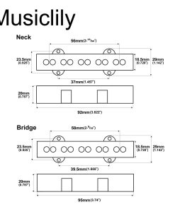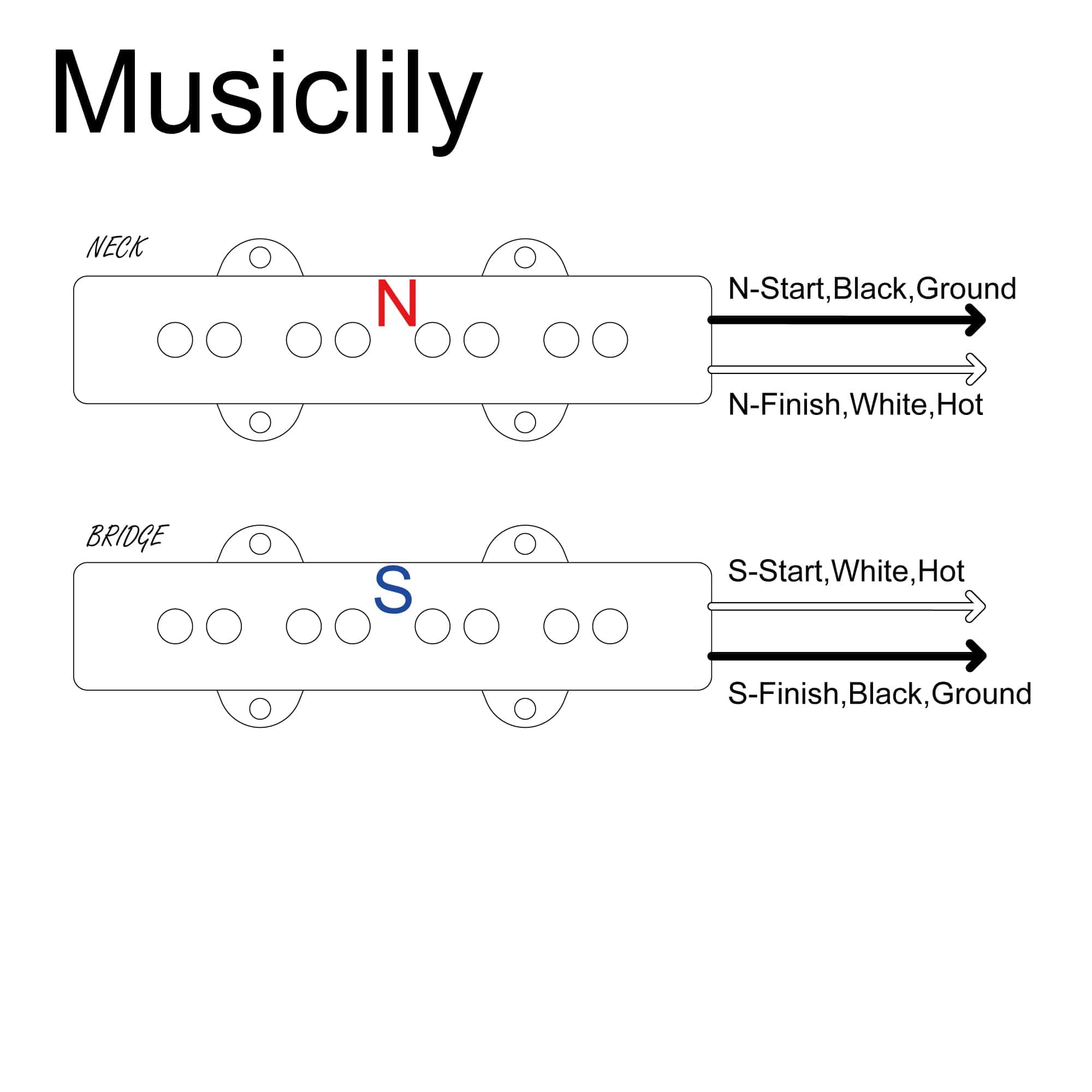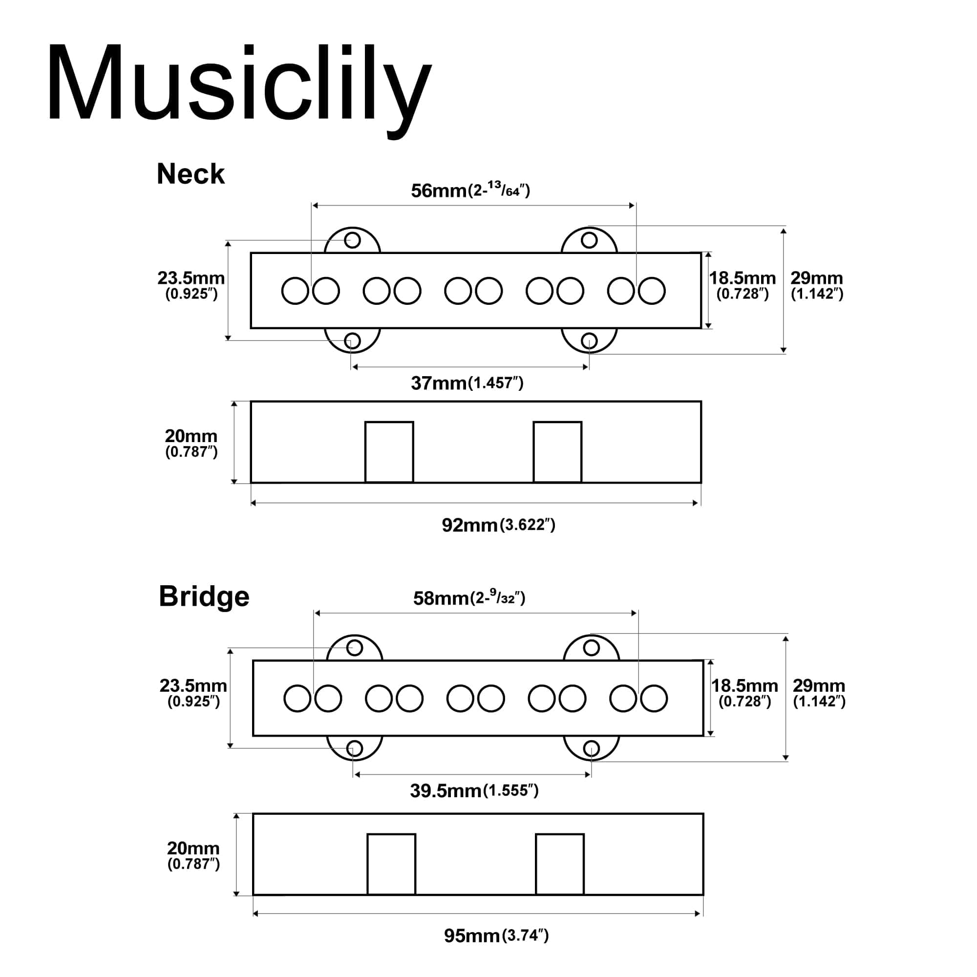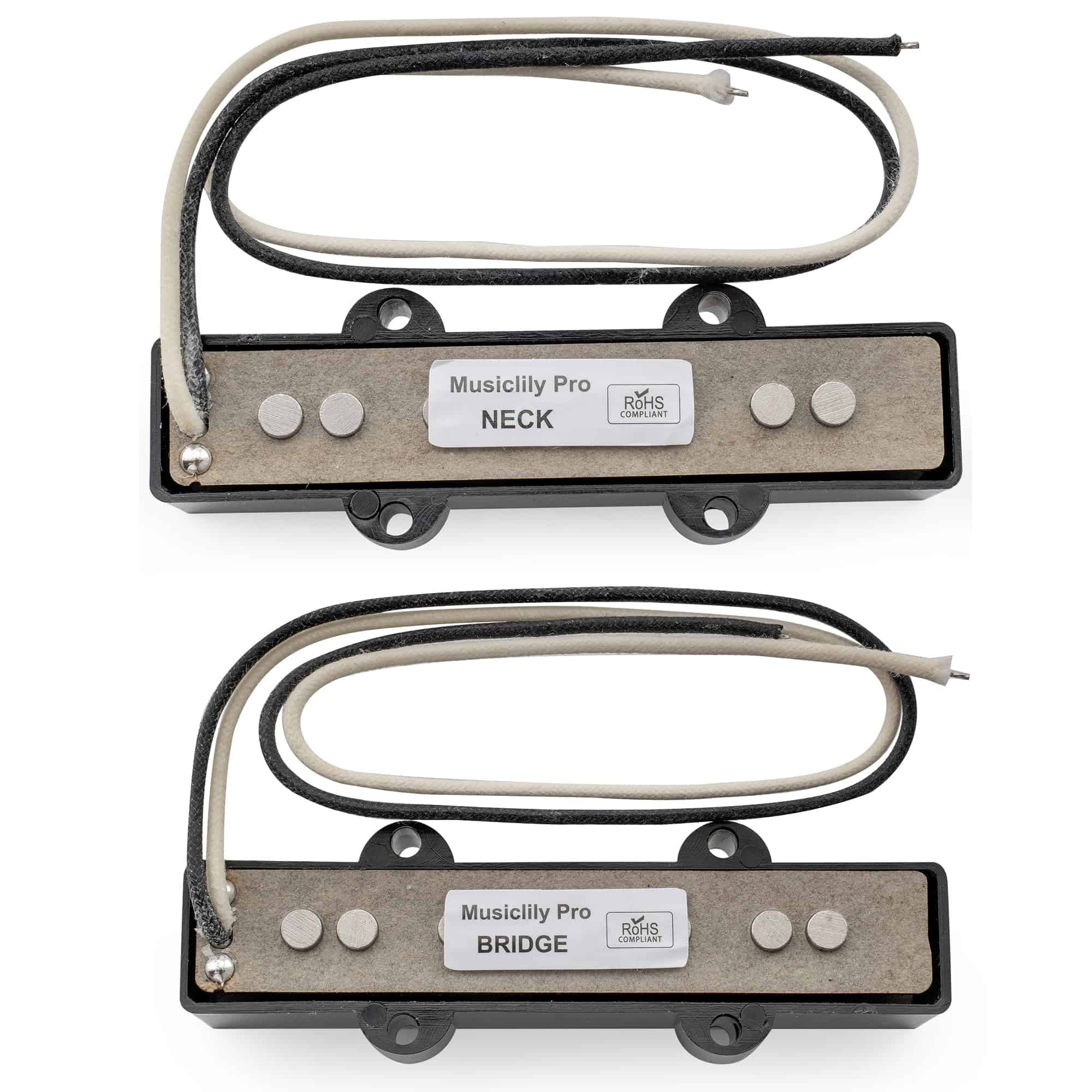 Set de Pastillas Musiclily Pro JB-70S Alnico 5 Single Coil para Posición de Cuello y Puente con 8.3K/7.9K para Bajo Estilo Jazz Bass, Negro.