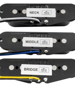 Set de pastillas cuello, medio y puente Musiclily Pro con imanes polares Alnico 5 escalonados para guitarra eléctrica estilo Strat. Produce tonos vintage similares a las pastillas F Custom 69 Strat, con salida equilibrada y cancelación de ruido en la pastilla del medio. Ideal para Blues, Rock y Classic Rock. Incluye accesorios de montaje.