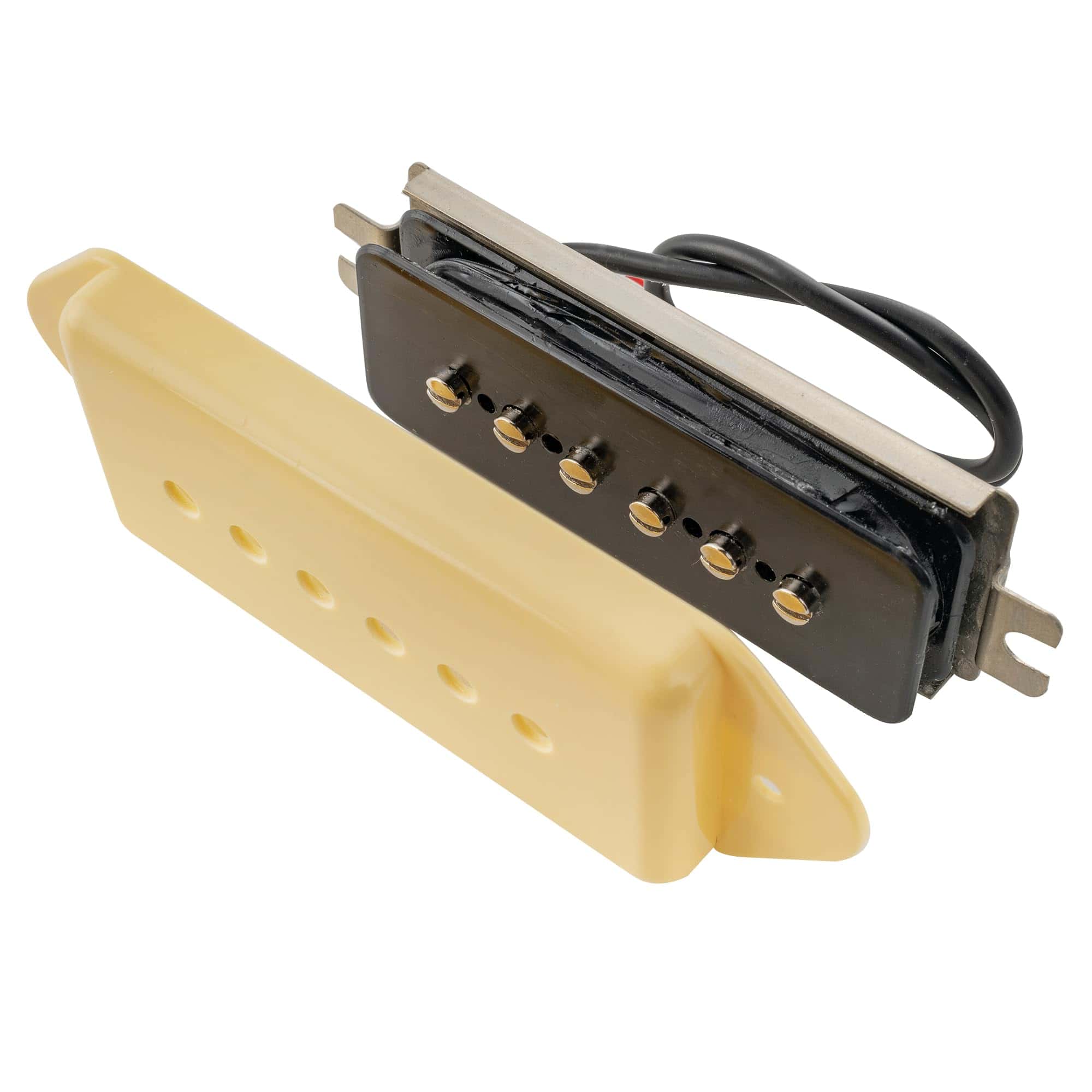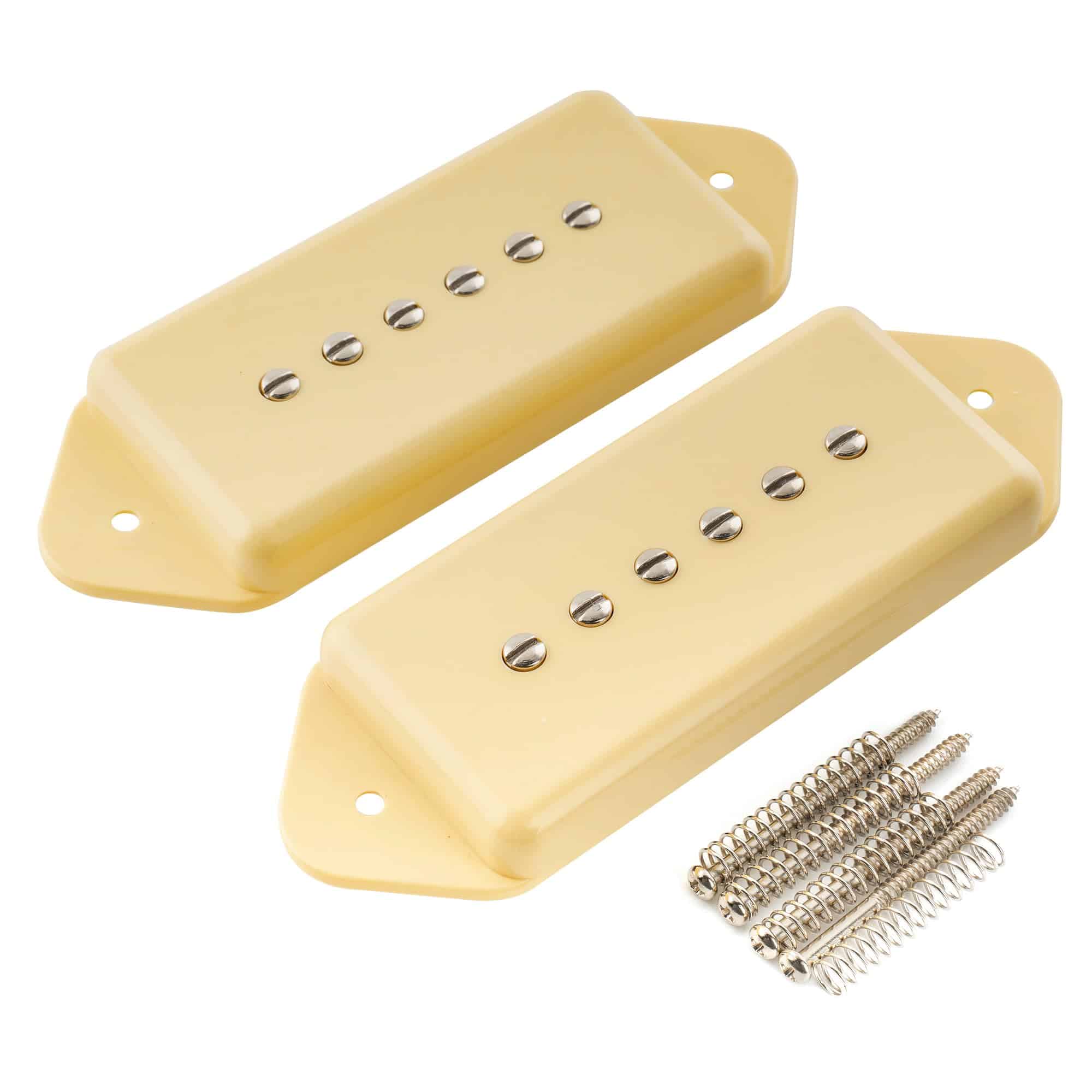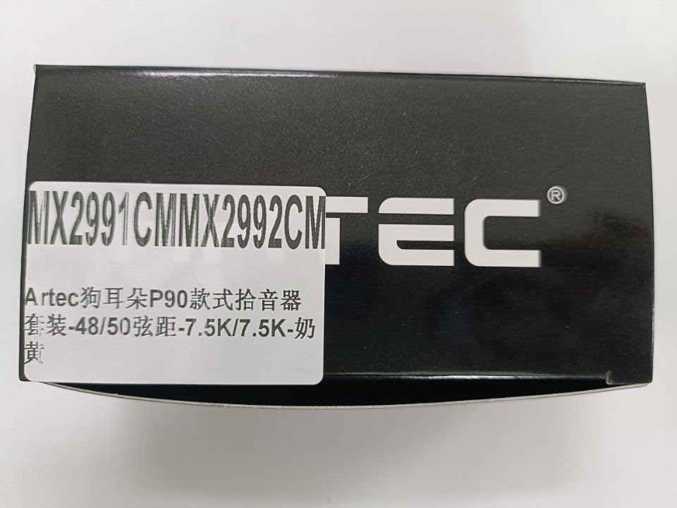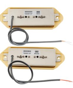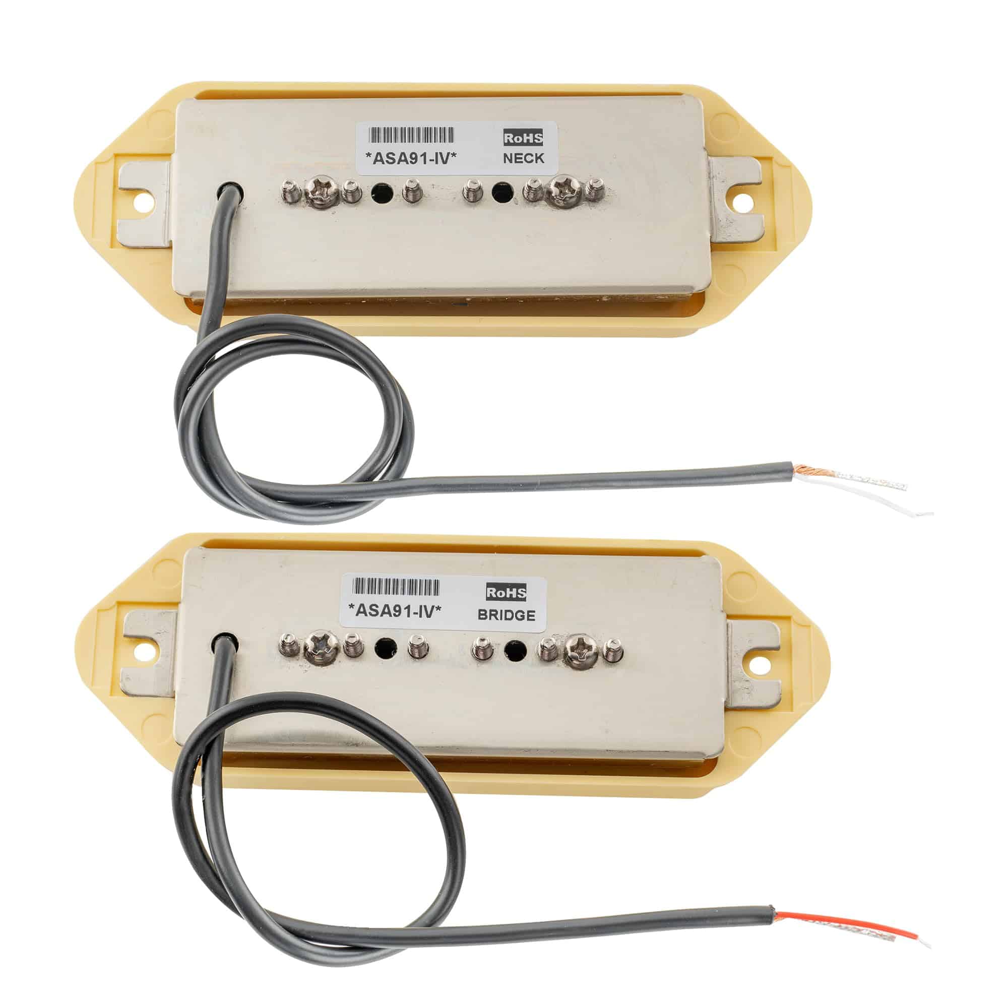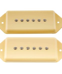 Set de Pastillas para Guitarra Eléctrica Artec ASA91 Alnico 5 Dog Ear P90 Single Coil para Posición de Cuello y Puente 7.5K, Crema. Las pastillas P90 son conocidas por su tono brillante y transparente con excelentes medios, mejor capacidad de cancelación de ruido que las pastillas normales de bobina simple, y los polos de Alnico V traen el auténtico sonido clásico vintage. El juego incluye pastillas para posición de cuello y puente, así como accesorios de montaje. Tenga en cuenta que los tornillos proporcionados pueden no adaptarse a su aplicación, por favor utilice los suyos si es posible.