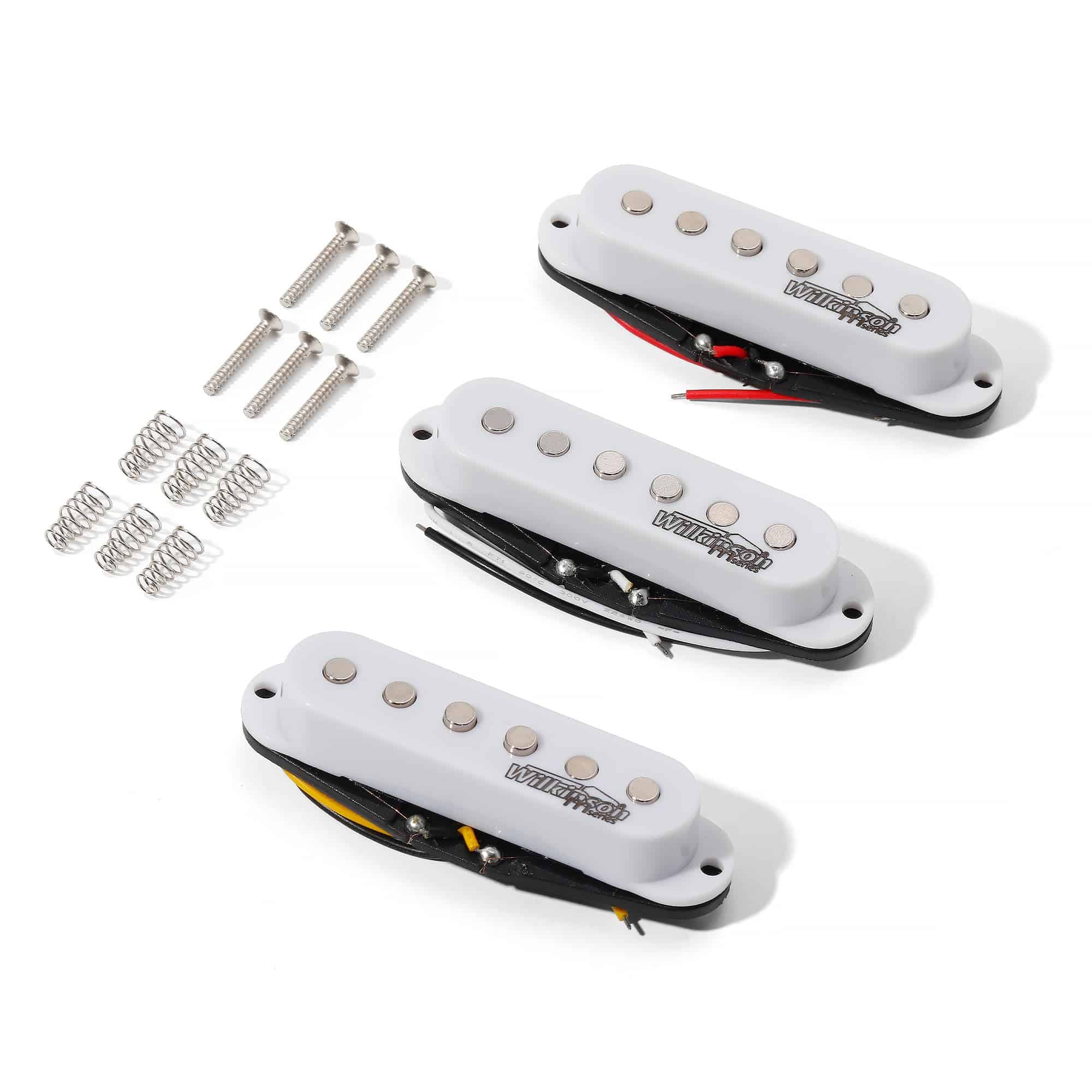 Set de Pastillas Sencillas de Cerámica Wilkinson M Series WOVS SSS para guitarra eléctrica tipo ST Stratocaster. Este set de pastillas es ideal para aquellos que buscan mejorar el sonido de su guitarra eléctrica tipo ST. Con posiciones de cuello, medio y puente, este set proporciona una variedad de tonos limpios y brillantes. Fabricadas con materiales de alta calidad, las pastillas Wilkinson M Series WOVS ofrecen una excelente respuesta y claridad de tono. Además, la cerámica utilizada en los imanes garantiza una mayor potencia y definición en el sonido. Incluido en el paquete: 3 pastillas (cuello, medio y puente), tornillos y resortes para una fácil instalación. Nota: Los tornillos suministrados pueden no ajustarse a todos los tipos de guitarras, se recomienda utilizar los tornillos adecuados para tu guitarra. Asegúrate de consultar la imagen para obtener información detallada sobre los parámetros de las pastillas.