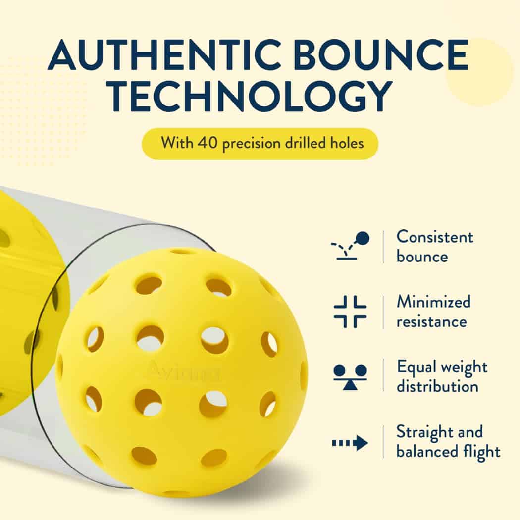 2. Diseño Inclusivo para Cada Jugador – Desde el novato entusiasta hasta el profesional experimentado, los sets de pelotas de pickleball de Aviana están meticulosamente diseñados para elevar el juego de los jugadores en todos los niveles.