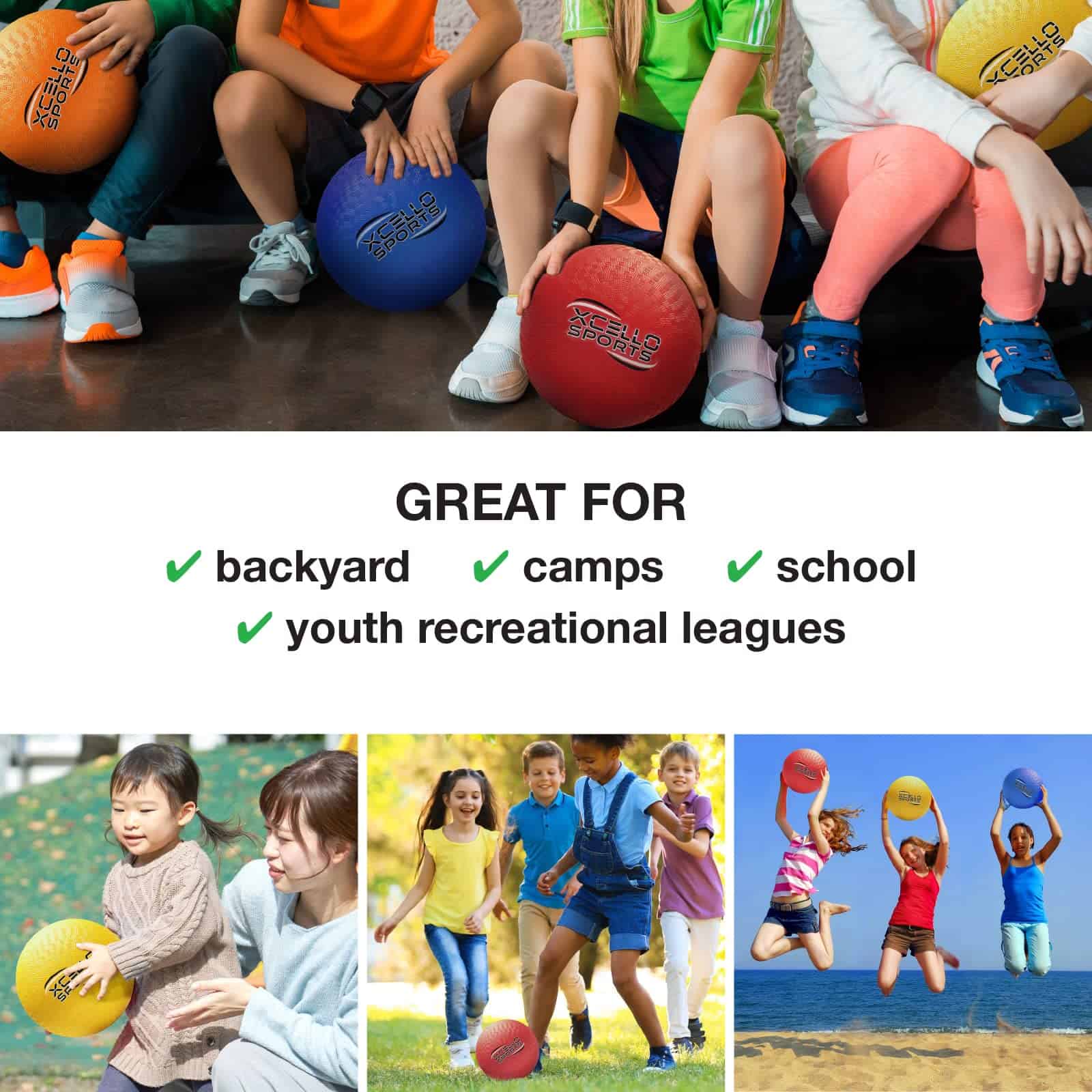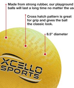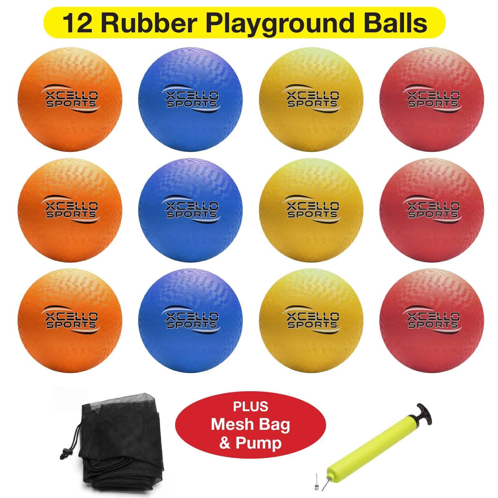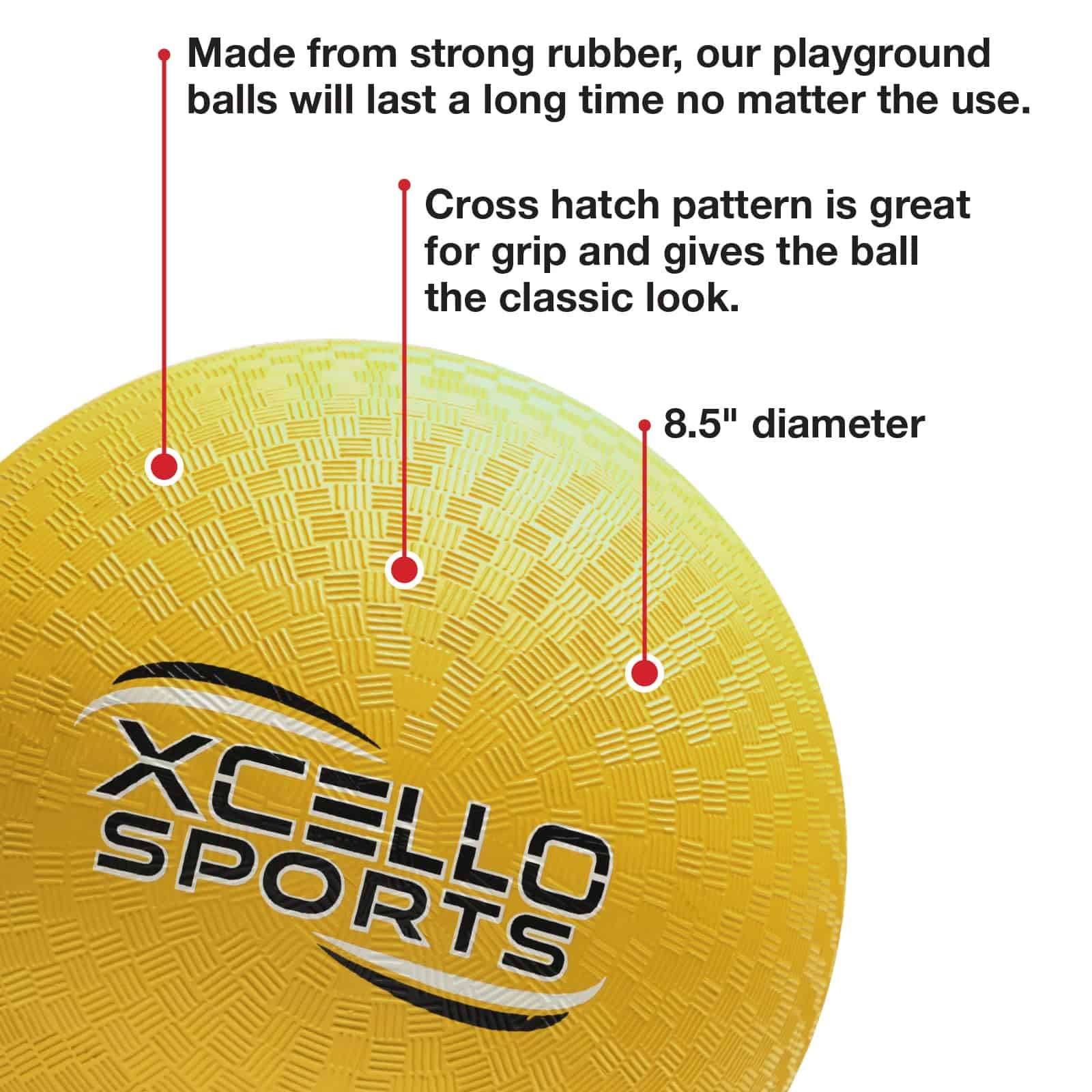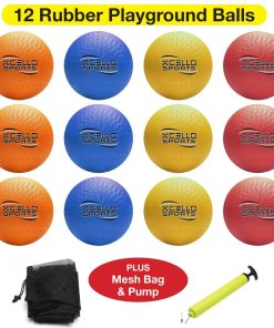 1. PELOTAS MULTICOLOR – Nuestras pelotas para juegos infantiles de 6 y 12 unidades vienen en una variedad de colores. Rojo, Amarillo y Azul para el paquete de 6 unidades, y Rojo, Amarillo, Azul, Naranja para el paquete de 12 unidades. 2. PAQUETES DE 6 Y 12 UNIDADES DISPONIBLES – ¡Este set de pelotas para juegos infantiles está disponible en un paquete de 6 y un paquete de 12! 3. CONSTRUCCIÓN DE CAUCHO – Nuestras pelotas para juegos infantiles están hechas de caucho resistente con el clásico patrón de cruz para un uso duradero y un excelente agarre. Perfecto para kickball, dodgeball, etc. 4. TAMAÑO ESTÁNDAR – La Pelota para Juegos Infantiles Xcello Sports viene en el tamaño estándar de 8.5. 5. INCLUYE BOLSA Y BOMBA – Nuestros paquetes de 6 y 12 pelotas para juegos infantiles incluyen una bomba de aire de mano con aguja y una bolsa de transporte. Estas pelotas para juegos infantiles se envían desinfladas.