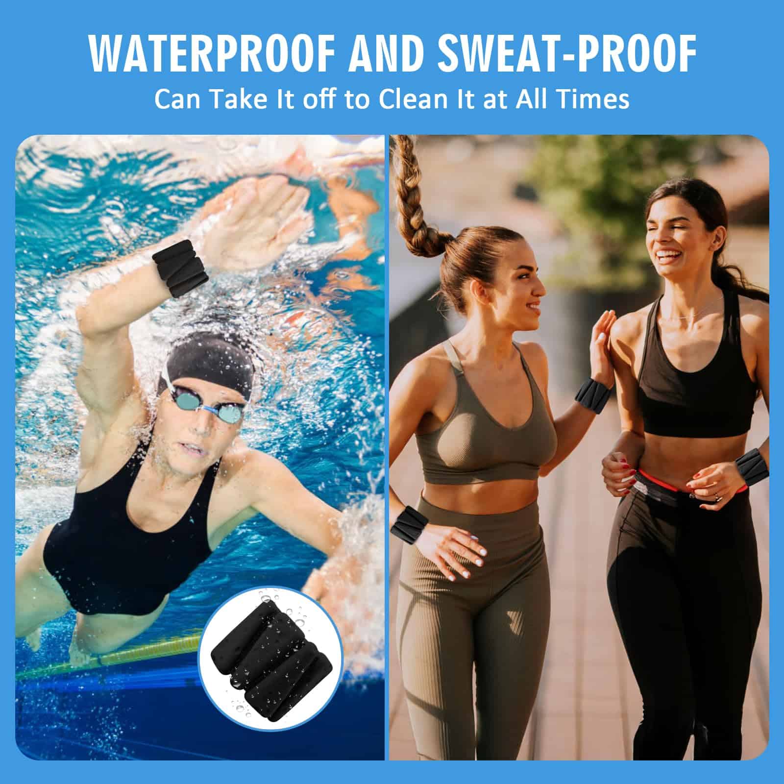 2. RESISTENTE AL SUDOR Y AL AGUA: Con un diseño resistente al agua y al sudor, estos juegos de pesas para manos de mujeres tienen una superficie de silicona que los hace fáciles de limpiar. ¡No se preocupe por el sudor post-entrenamiento que permanece en sus bandas de muñeca con peso, simplemente quíteselas para una limpieza sin problemas!
