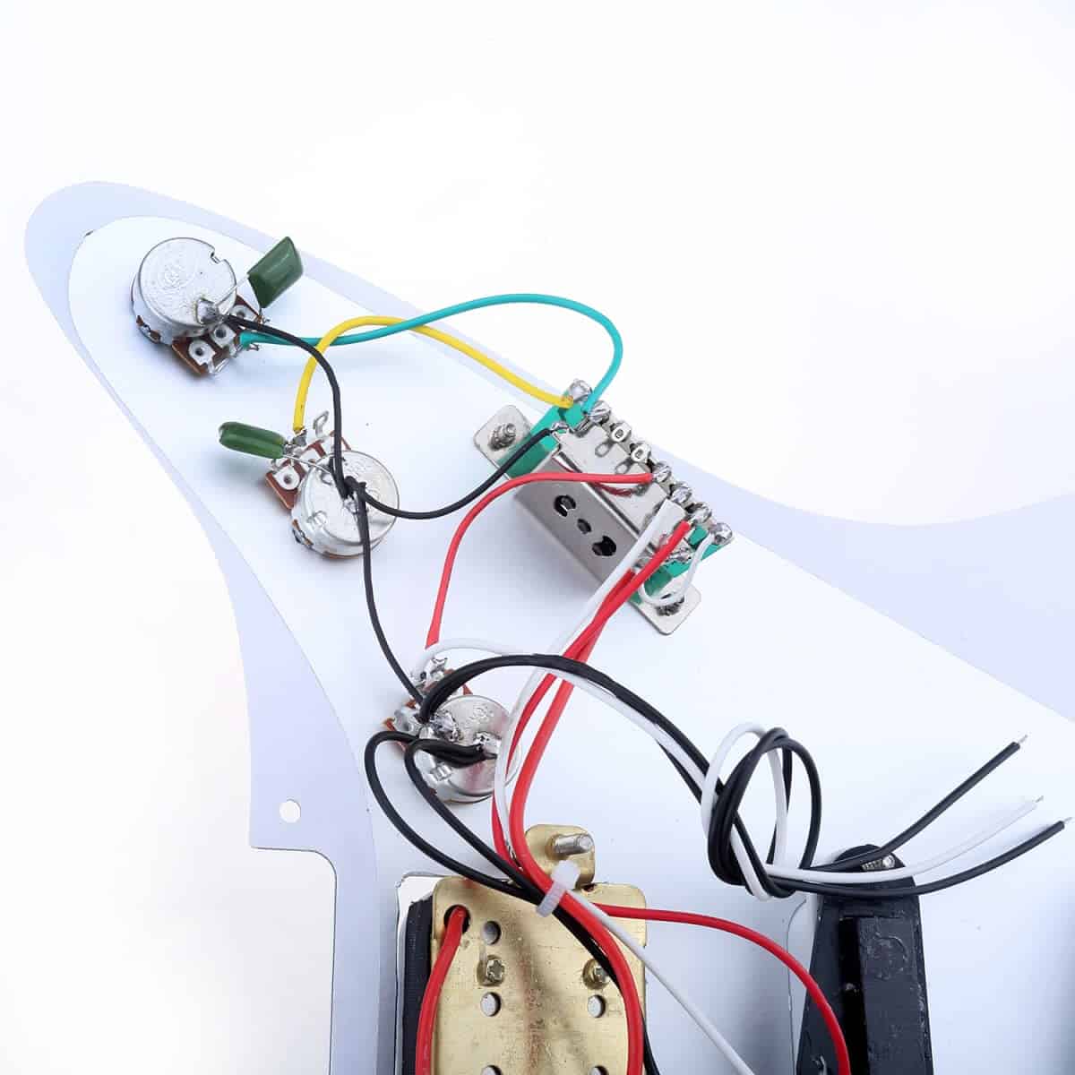 Este set incluye 2 pastillas de bobina simple y 1 pastilla humbucker para un sonido strat clásico. Pickguard de 3 capas. El interruptor es de 5 vías y el cableado consta de un control de volumen y 2 controles de tono. Solo tienes que soldar el jack de entrada y ¡estarás listo para tocar! Incluye: 1 x Set de Pickguard Preconectado