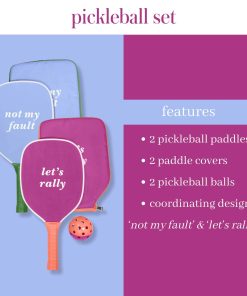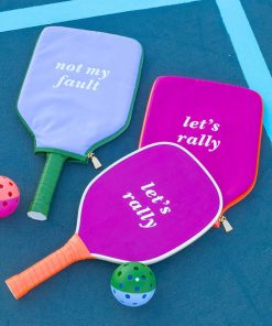 Este Set de Pickleball Kate Spade New York Let’s Rally incluye 2 paletas de pickleball vibrantes, una en color azul y verde con la frase «not my fault» y otra en una combinación de colores rosa y naranja con la frase «let’s rally». Además, incluye 2 fundas para paletas de pickleball coordinadas, una en azul y verde y otra en rosa y naranja, ambas con cremalleras resistentes y logos de Kate Spade New York. El set también viene con 2 pelotas de pickleball de dos tonos, una en azul y verde y otra en rosa y naranja.