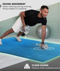 El tapete de ejercicio se puede personalizar fácilmente para adaptarse a tus necesidades de protección de suelo gracias a su forma de rompecabezas expandible infinitamente. Este tapete es perfecto como capa de suelo para espacios de fitness y gimnasio, debajo de equipos deportivos, espacios de trabajo, garajes, sótanos y más. El material premium ligero del tapete también lo hace insonorizante, aislante del calor, impermeable, duradero y fácil de limpiar con agua y jabón.