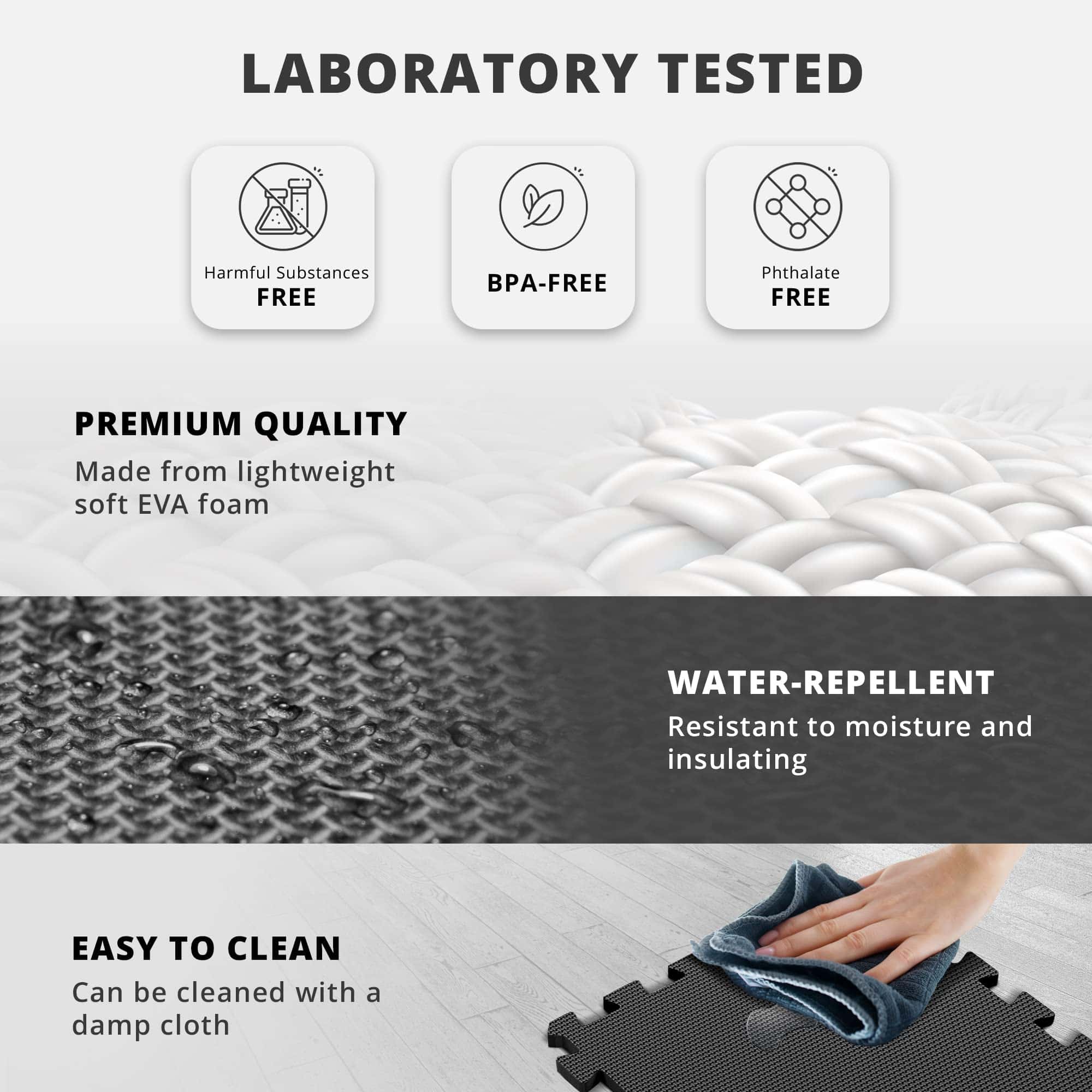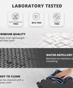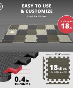 – El tapete de ejercicios se puede personalizar fácilmente para adaptarse a tus necesidades de protección de suelo gracias a su forma de rompecabezas infinitamente expansible.