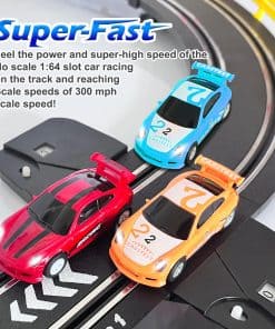 Experimenta la emoción de las carreras con este Set de Carreras 1:64 Scale Slot Racing, que ofrece múltiples posibilidades de diseño dentro de un espacio de 96x88x6cm. El set incluye 3 coches de alta velocidad con faros y potentes imanes, todos alimentados por un adaptador para juego ilimitado. El diseño de la pista fácil de armar ofrece diversas combinaciones de instalación, y un contador de vueltas agrega diversión. Hecho de plástico ABS respetuoso con el medio ambiente, este set es un regalo perfecto y seguro para niños de 8 años en adelante. Contáctanos en cualquier momento para consultas; aseguramos una respuesta en 24 horas.