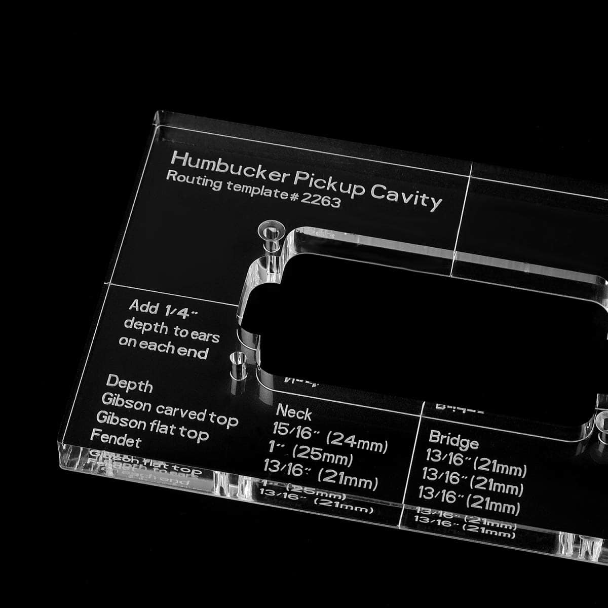 Set de Plantillas de Enrutamiento de Pastilla Humbucker Acústica CNC Musiclily Pro para Cuerpo de Guitarra Eléctrica y Golpeador. Advertencia: la plantilla del golpeador no se ajustará a una pastilla humbucker cubierta completamente de metal tipo LP, es para humbuckers tipo ST. Esta plantilla le ayudará a crear una cavidad para la pastilla humbucker en un cuerpo y golpeador. Tamaño y grosor precisos y correctos, cortados por máquina CNC, por lo que no necesitará preocuparse por las dimensiones de la cavidad. Nuestras plantillas de enrutamiento de cristal transparente le permiten ver el cuerpo de la guitarra debajo, lo que hará que sea fácil colocar la plantilla con precisión. Dimensiones exteriores: 150mm x 100mm (5-7/8 x 3-7/8 pulgadas), 237 x 148mm (9-21/64 x 5-53/64 pulgadas), grosor 10mm (3/8 de pulgada), fácil de hacer contacto con el cojinete del enrutador. Compatible con la mayoría de los enrutadores y fresas estándar. Líneas centrales y medidas de profundidad grabadas con láser. Agujeros avellanados para anclar la plantilla con tornillos. Para aprender cómo usar esta plantilla, puede consultar el video de YouTube «cómo usar una plantilla de enrutamiento de pastilla de guitarra» relacionado, también puede comprar otras fresas y herramientas estándar de otros proveedores para trabajar con nuestra plantilla.