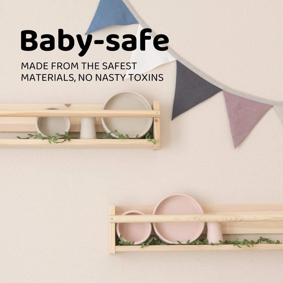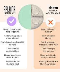 1. Diseñado para tu pequeño: Facilita el destete del bebé con nuestro set de alimentación para bebés. Introduce la independencia durante la hora de la comida con nuestro inteligente diseño de vaso de entrenamiento, tazón y plato en un solo set. 2. Fomenta la independencia al comer: Nuestros platos de silicona de 14 onzas y tazones de silicona de 9 onzas tienen una pared interna curva que ayuda a los niños a recoger la comida con facilidad. Estos suministros de alimentación para bebés tienen superficies inalteradas, promoviendo hábitos alimenticios saludables mientras se fomentan habilidades motoras finas y la confianza en sí mismos durante la hora de la comida. 3. Vaso de entrenamiento más conveniente: Este vaso de 3 onzas para bebé tiene un perfil interior especialmente diseñado que asegura un flujo de líquido uniforme para beber de forma segura. Hemos creado nuestro vaso de silicona para bebé en forma de reloj de arena para un agarre seguro y antideslizante que facilita la alimentación independiente. 4. Disfruta de Comidas Pacíficas: Nuestros platos, tazones y vasos para bebés cuentan con una base ponderada para estabilidad y evitan los derrames. Disfruta de comidas sin desorden con tu pequeño utilizando estos vasos de silicona, platos y tazones para bebés que fomentan la autosuficiencia y el logro personal. 5. Totalmente Seguro para los Niños: Obtén nuestro set de alimentación para bebés, una elección consciente para la hora de comer de tu hijo. Nuestro set de destete guiado por bebés está hecho de silicona suave de grado alimenticio premium al 100% y libre de BPA, BPS, PVC, plomo, ftalatos o cadmio. Son seguros para el horno, microondas y lavavajillas.