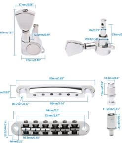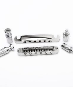 Características: 1. El kit de puente y tailpiece tune-o-matic se utiliza para Guitarra eléctrica LP. 2. Este kit de puente de sillín rodante incluye 4 postes a juego (2 para tailpiece, 2 para puente). 3. Este puente de guitarra está hecho de un material metálico resistente y fuerte. 4. Fácil de instalar. Gran accesorio para guitarra. 5. 1 puente, 1 tailpiece, 6 clavijas de afinación bloqueables para guitarra, 4 postes. Especificación: Material: Aleación Color: Plata Tamaño del Tailpiece: Ancho (16 mm) Longitud (99 mm) Espaciado del Tailpiece entre 2 Postes (80 mm de centro a centro) Tamaño del Puente: Ancho (14.2 mm) Longitud (84 mm) Espaciado de las cuerdas: 10.3 mm Tamaño de las clavijas de afinación bloqueables: Longitud (22 mm) Altura (46 mm) Paquete incluye: 1 Puente 1 Tailpiece 6 Clavijas de afinación bloqueables para guitarra 4 Postes