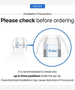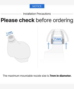 2. Precaución: Se recomienda ajustar hasta una posición de hasta 5 mm dentro de la punta del oído. El almacenamiento sobreextendido puede causar distorsión del sonido. El diámetro máximo compatible del tamaño de la boquilla es de 7 mm.